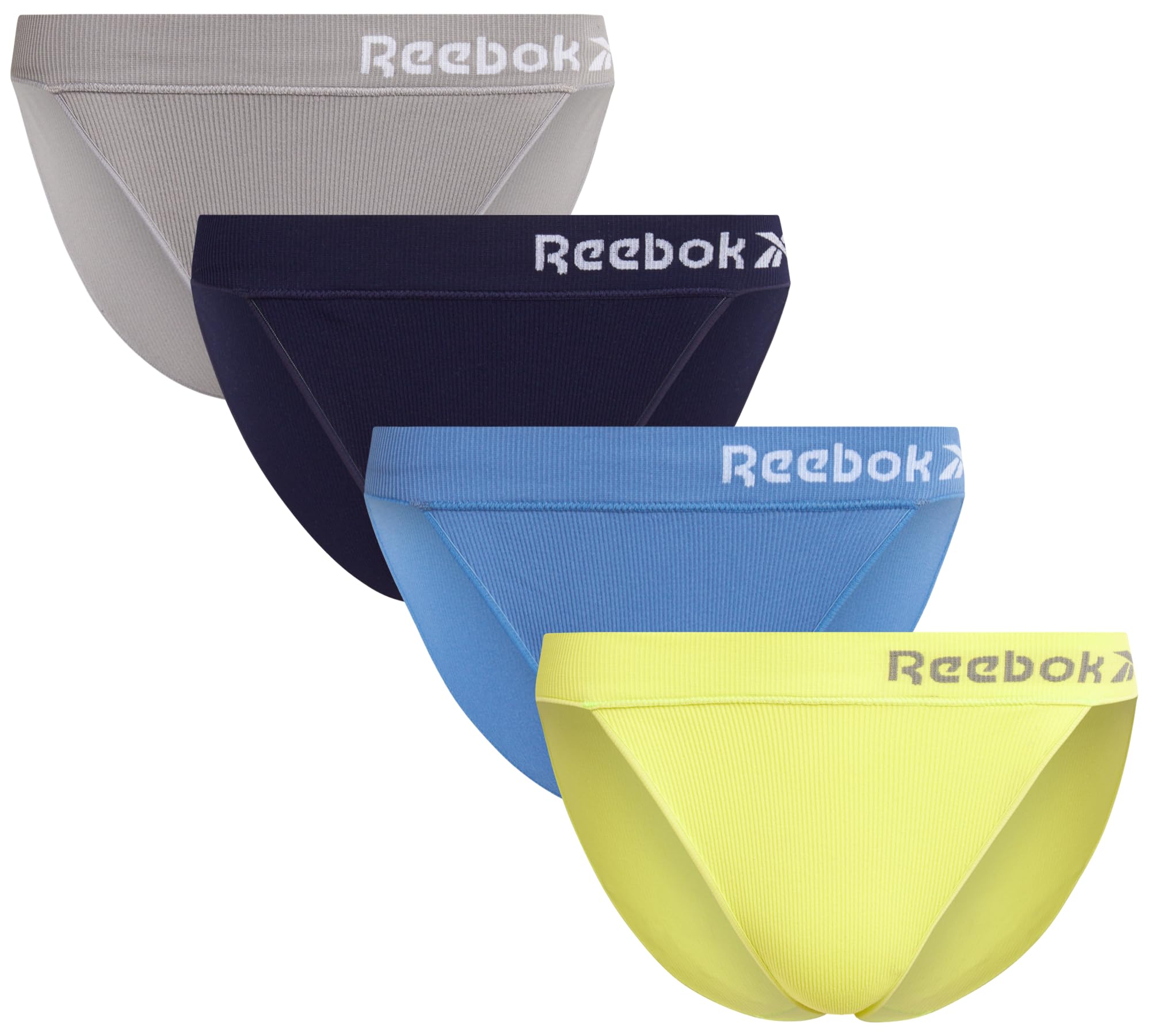 Reebok Womens Bikini Underwear - 4 Pack Stretch Performance Ribbed Knit Brief Panties Bikini Underwear for Women (Size: S-XL)|Clothing