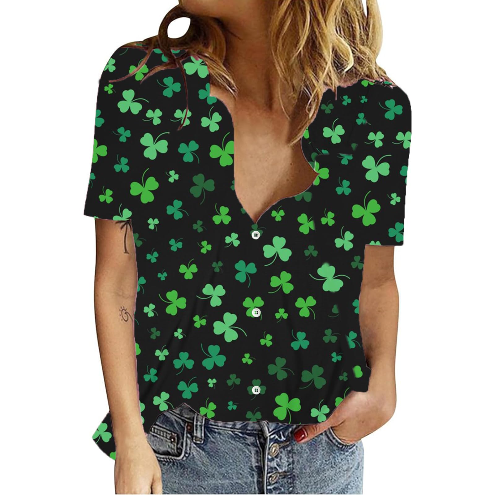 Hawaiian Button Down Shirts for Women Funny Cute Holiday Casual V Neck Short Sleeve Tops Blouse|Clothing