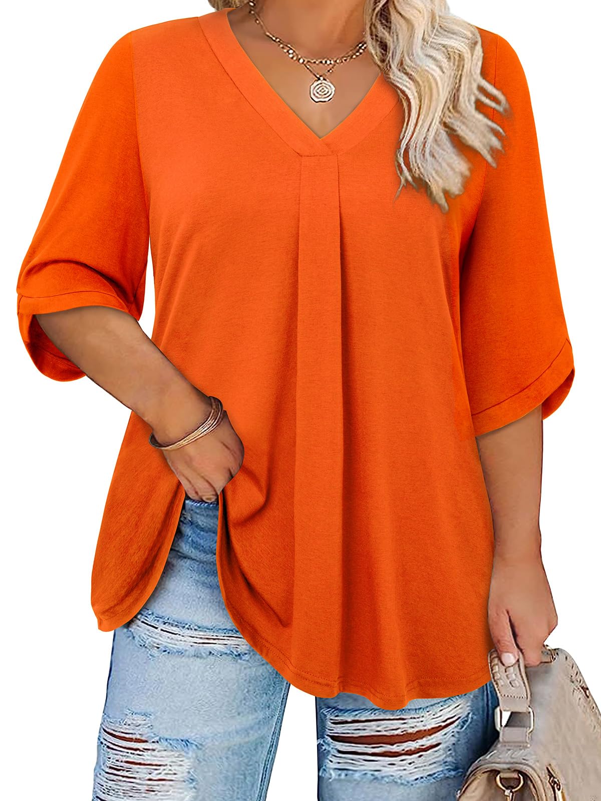 Siddhe Plus Size Tops for Women 3/4 Sleeve Shirts V Neck Blouses Tunic Top Spring Summer 2025.|Clothing