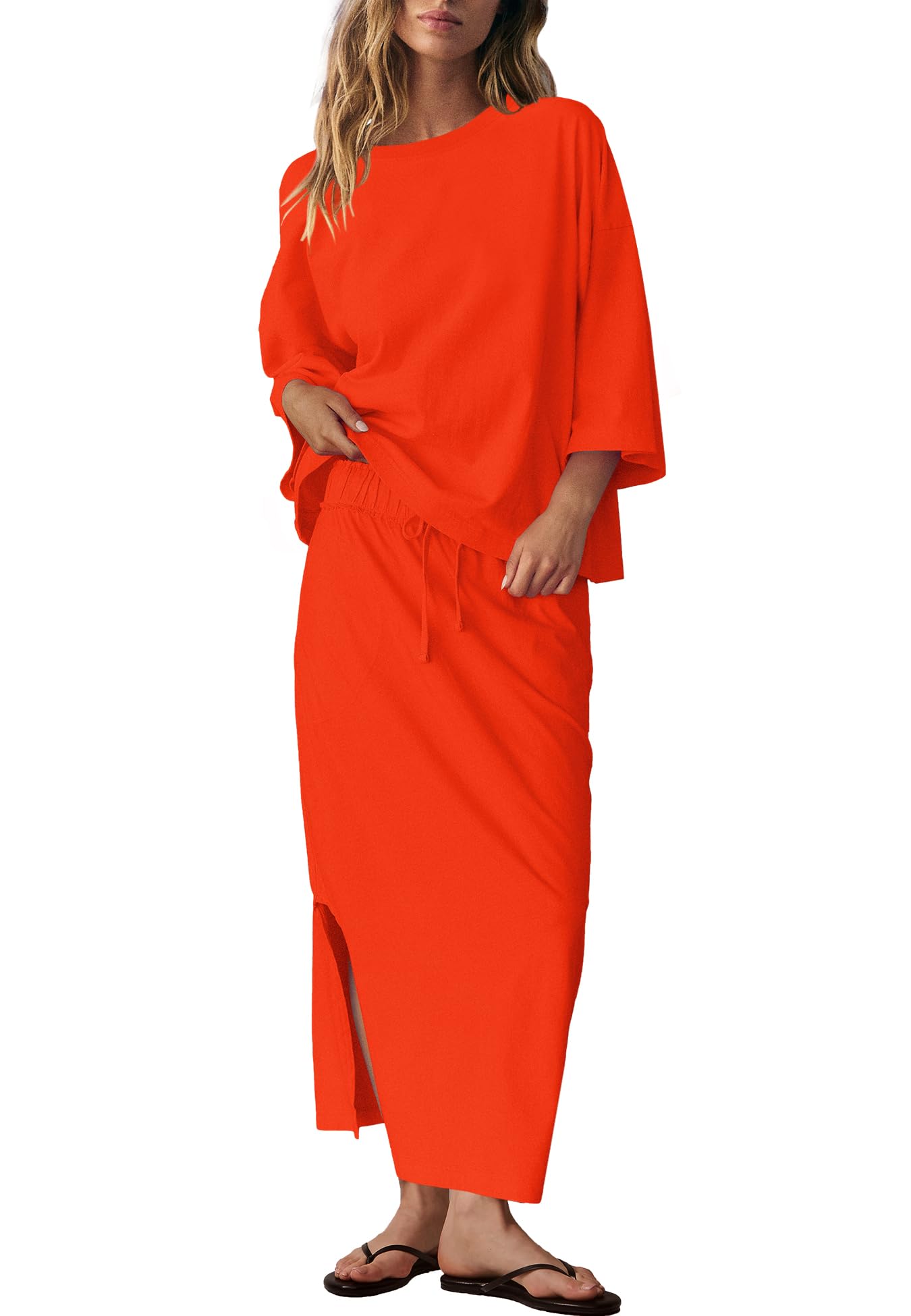 LAMISSCHE Skirt Sets Women 2 Piece Outfits Casual Lounge Set Back Vented Tops and Maxi Dress with Pockets|Clothing