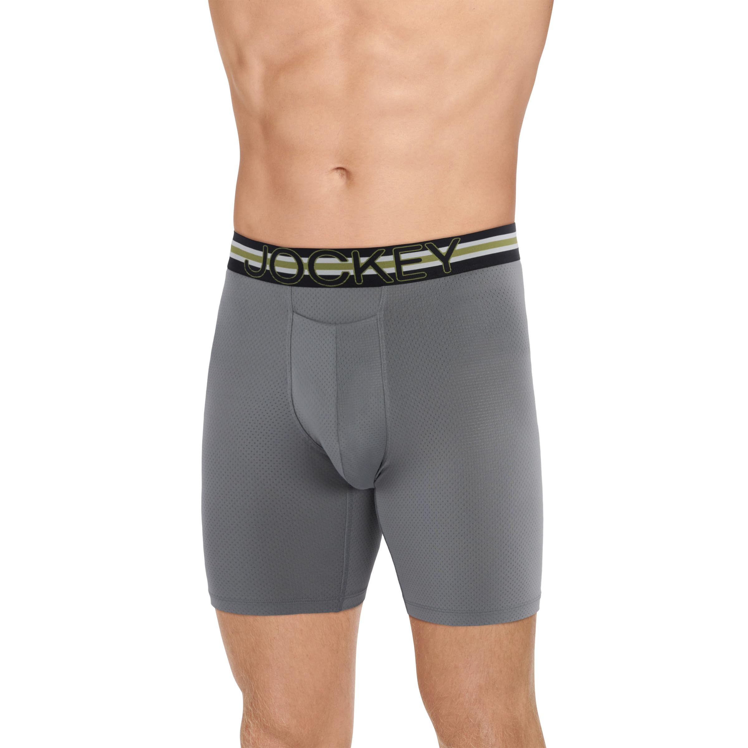 Jockey Sport Men's Underwear Stability Pouch Microfiber 9" Long Leg Boxer Brief|Clothing