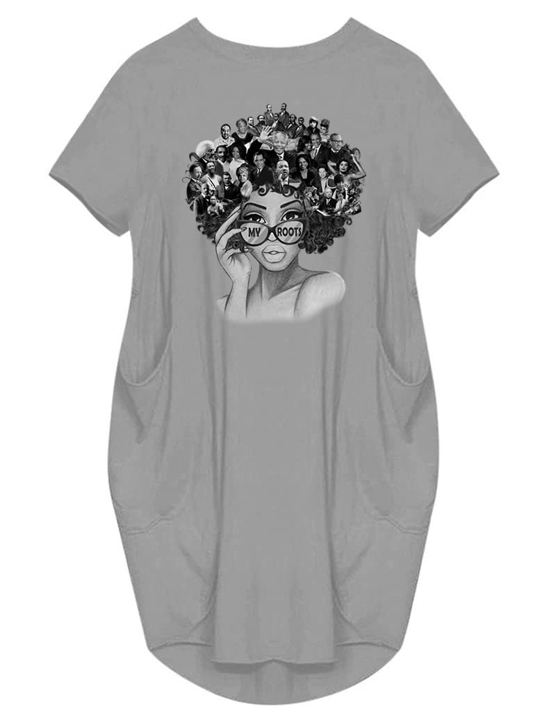 WbJetr My Roots Printed Short Sleeve Pocket Dress Black Woman Afro Tunic Tops|Clothing
