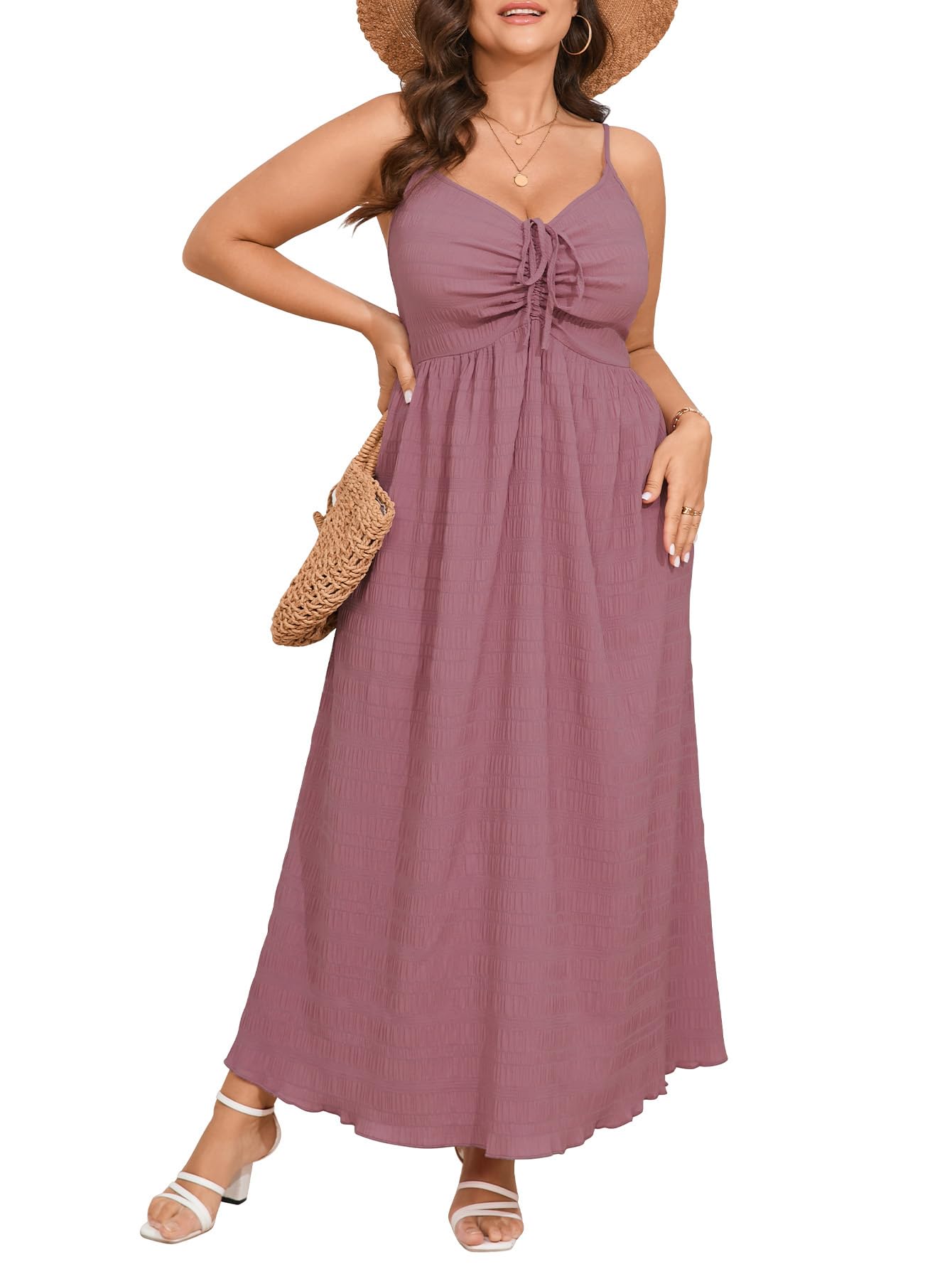 SHESTARR Women's Plus Size Summer Dress Spaghetti Strap Sleeveless Sweetheart Neck Swing A Line Maxi Long Dress|Clothing