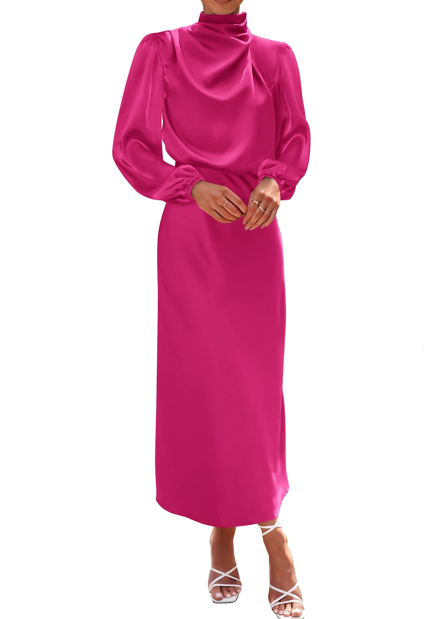BTFBM Womens Mock Neck Satin Dress Spring Summer 2026 Long Sleeve Lightweight Formal Wedding Party Maxi Cocktail Dresses|Clothing