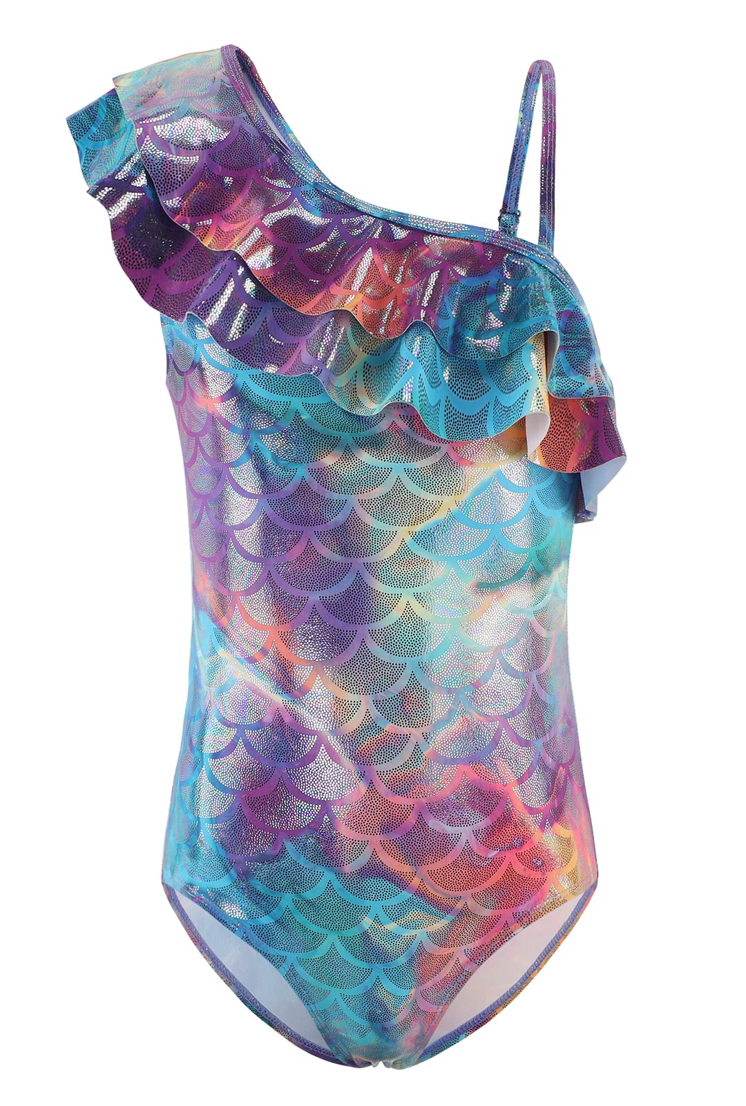 Girls One Piece Swimsuits One Shoulder Ruffle Swimwear Floral Bathing Suit|Clothing