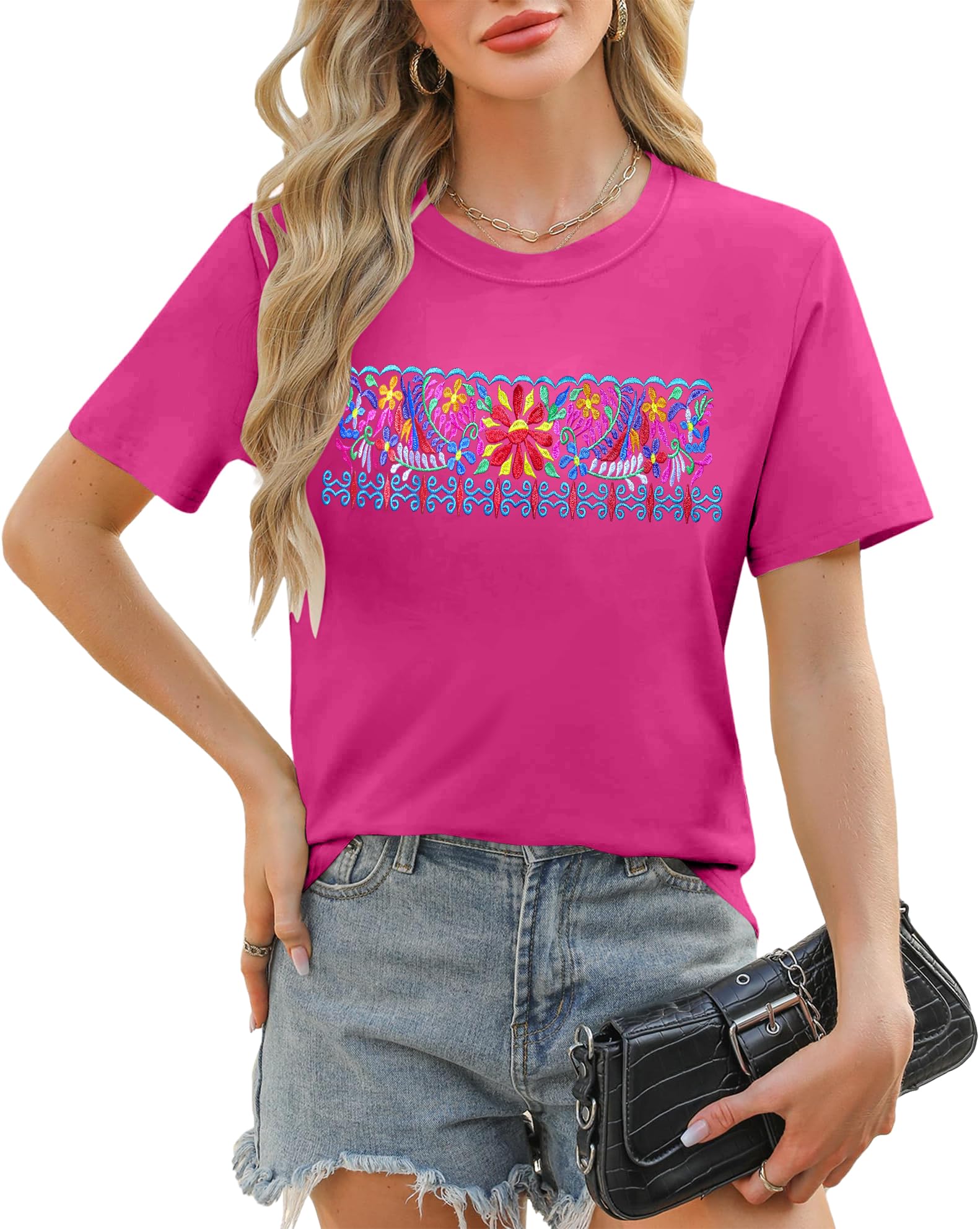 Mexican Shirts for Women: Floral Embroidered T-Shirt Cinco De Mayo Tees Mexico Fiesta Tops Casual Boho Tunic|Clothing