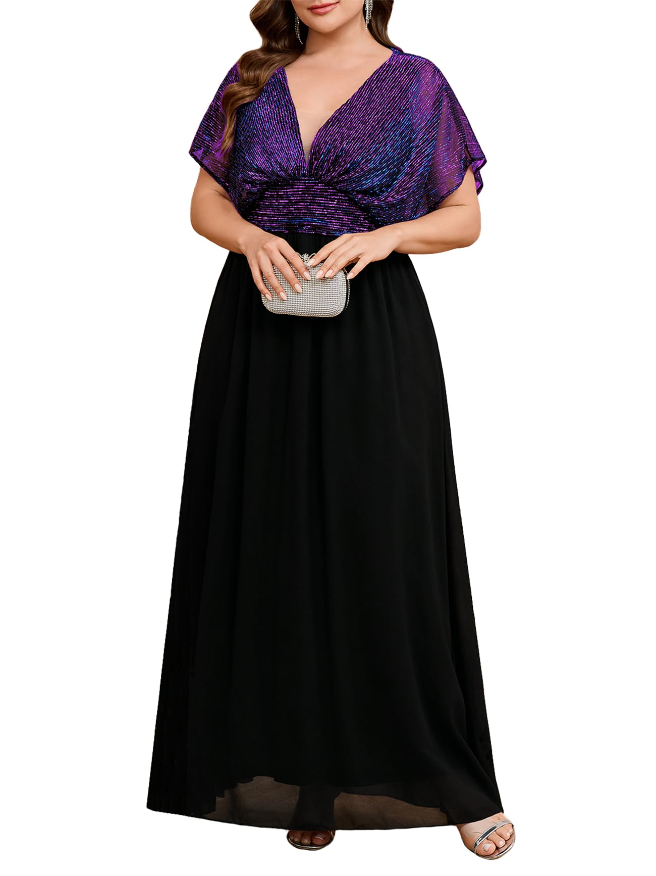 TIARALY Plus Size Formal Dress Maxi V Neck A Line Evening Gown Wedding Guest Cocktail Mother of The Bride Dresses|Clothing