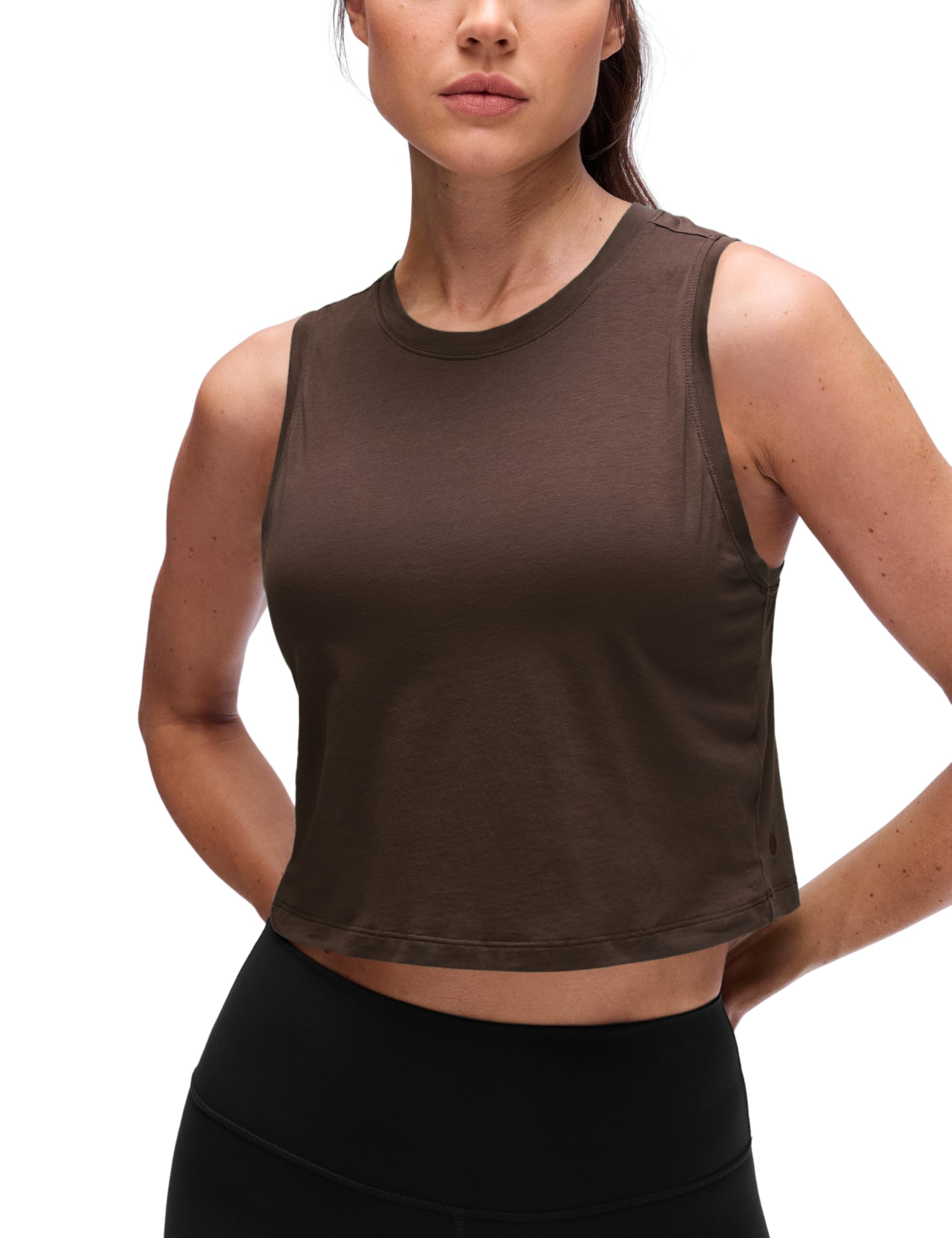 CRZ YOGA Pima Cotton Crop Crewneck Tank Tops for Women - Workout Athletic Casual Yoga Soft Comfort Racerback Sleeveless Shirt|Clothing