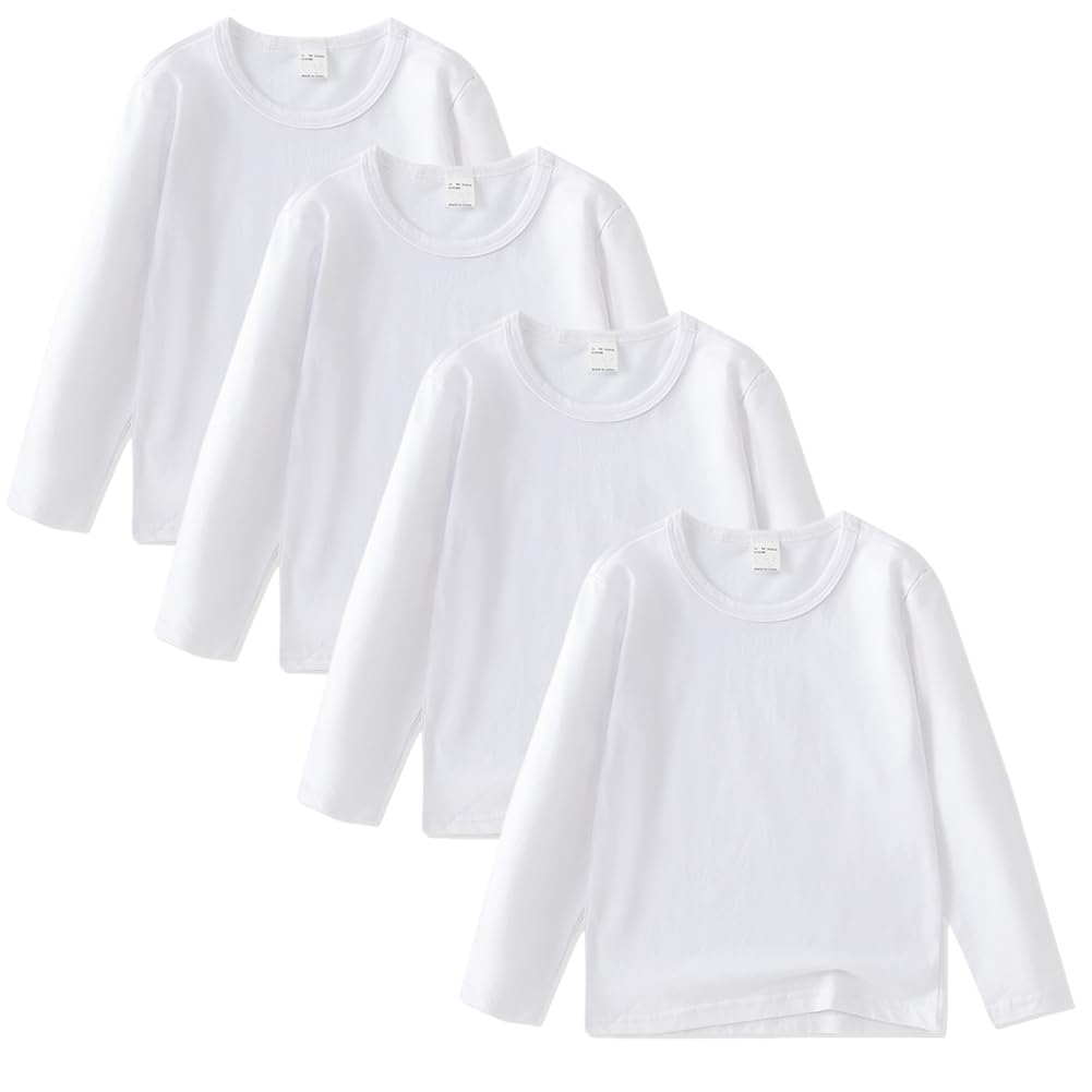 Comche 4 Pack Cotton Long Sleeve Tee Shirts for Boys and Girls Kids Toddlers' Basic Crewneck Tops T-Shirts|Clothing