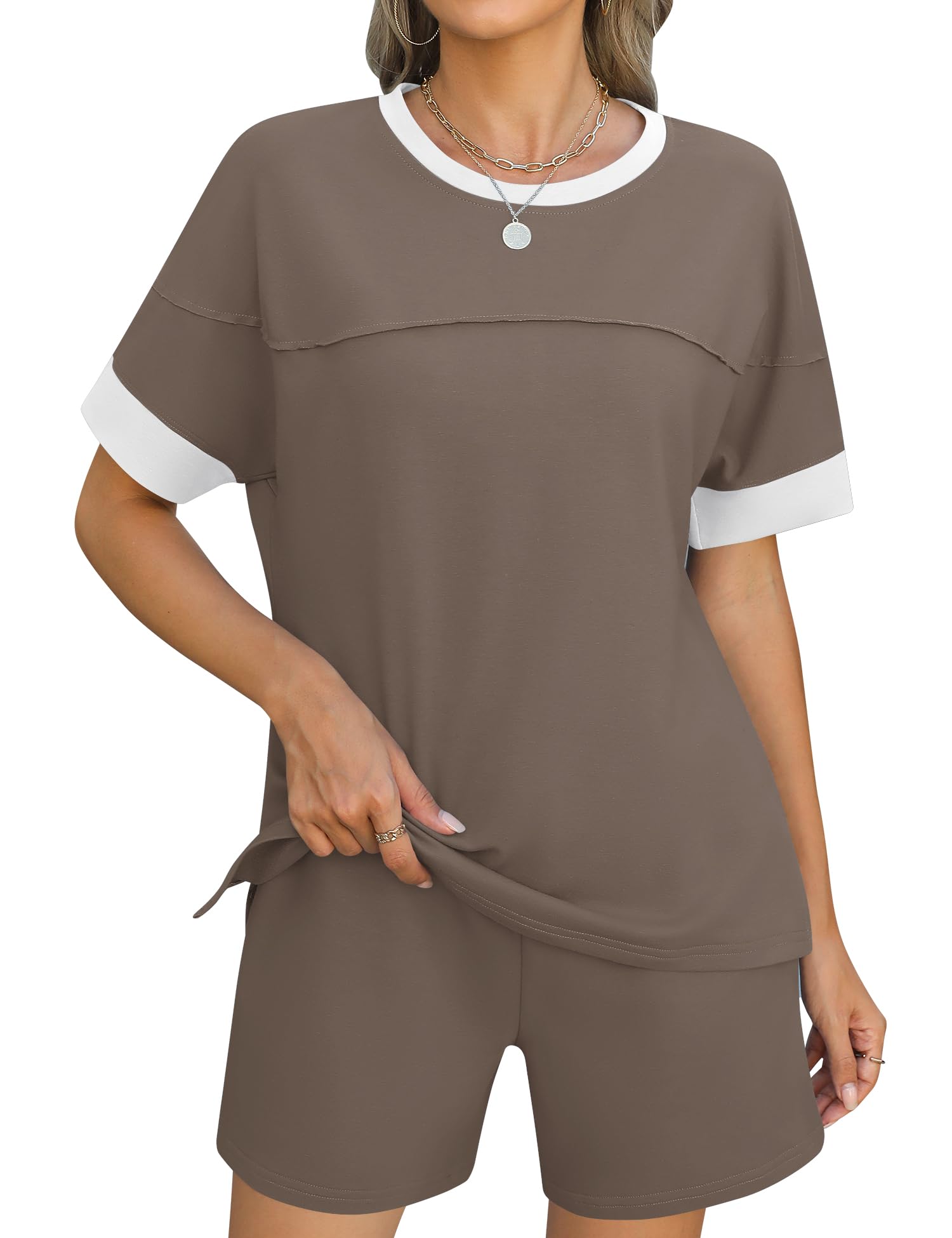 Rapbin Summer Outfits for Women 2025 Lounge Shorts College Outfits Cute Two Piece Outfits Summer Short Sleeve Shirts Shorts with Pockets for Women S|Clothing