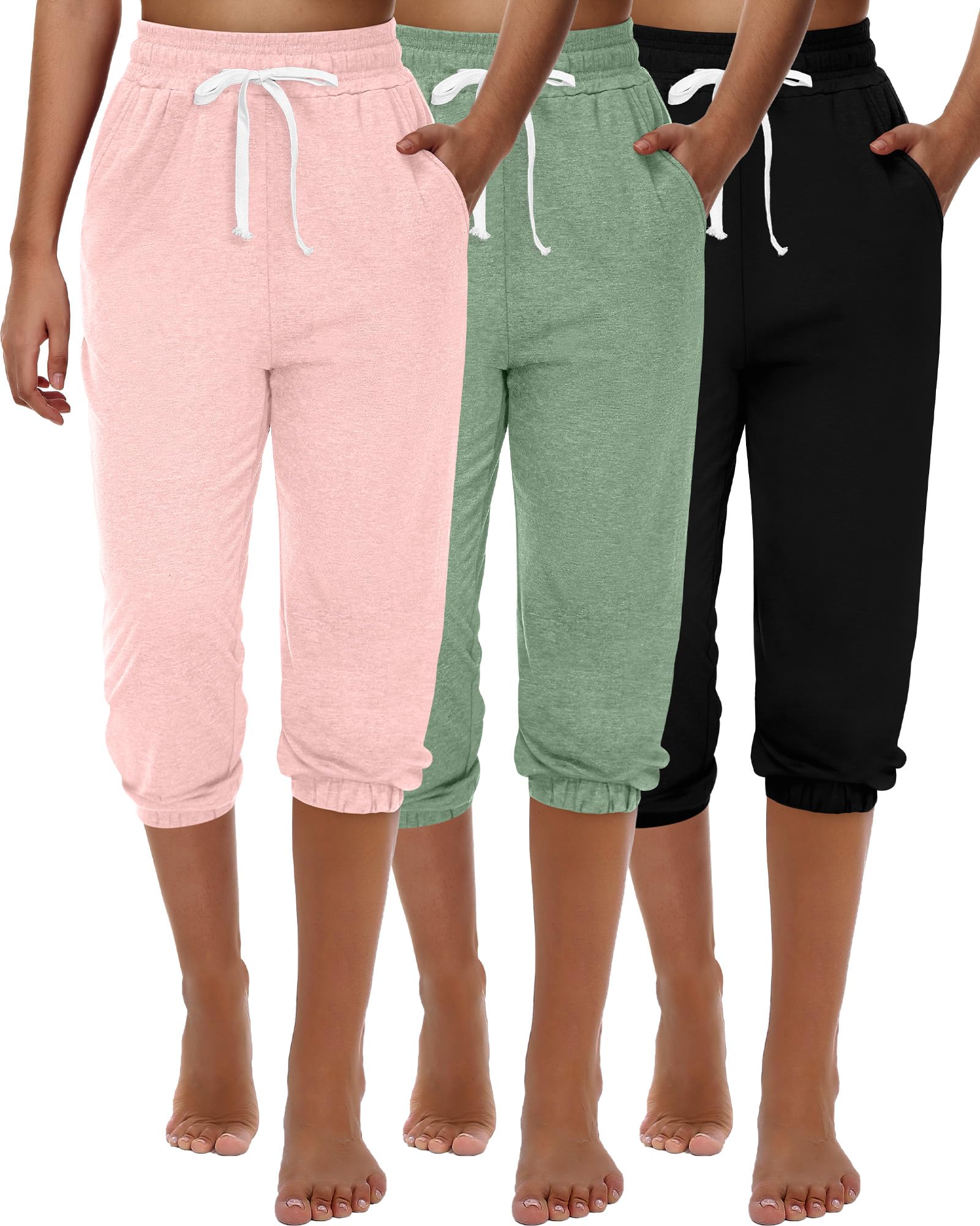 Ficerd 3 Pcs Women's Capri Sweatpants Joggers Summer Casual Sports Cropped Lounge Pants High Waisted Athletic with Pockets|Clothing