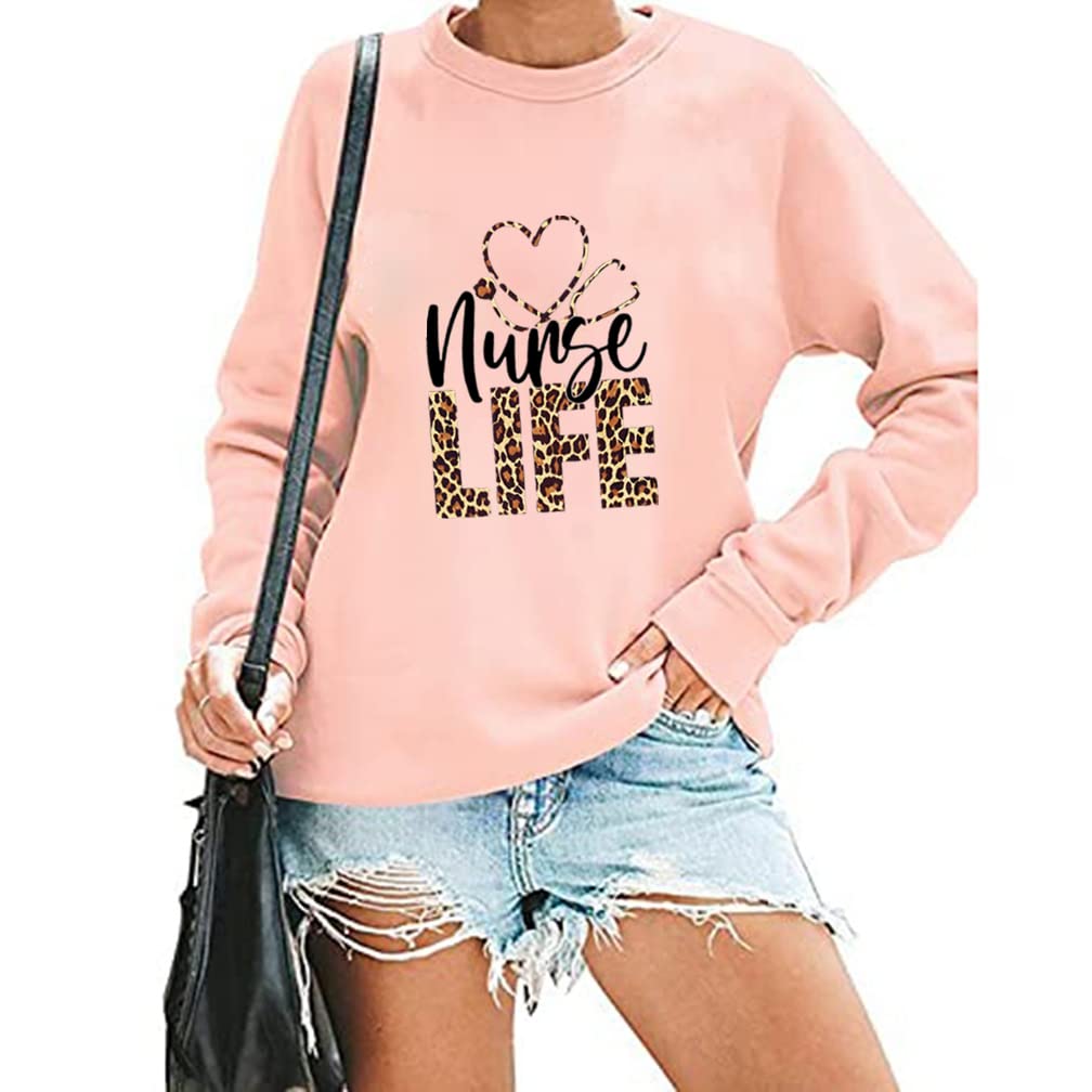 Nurse Life Sweatshirt for Women Funny Letter Print Stethoscope Graphic Long Sleeve Pullover Tops|Clothing