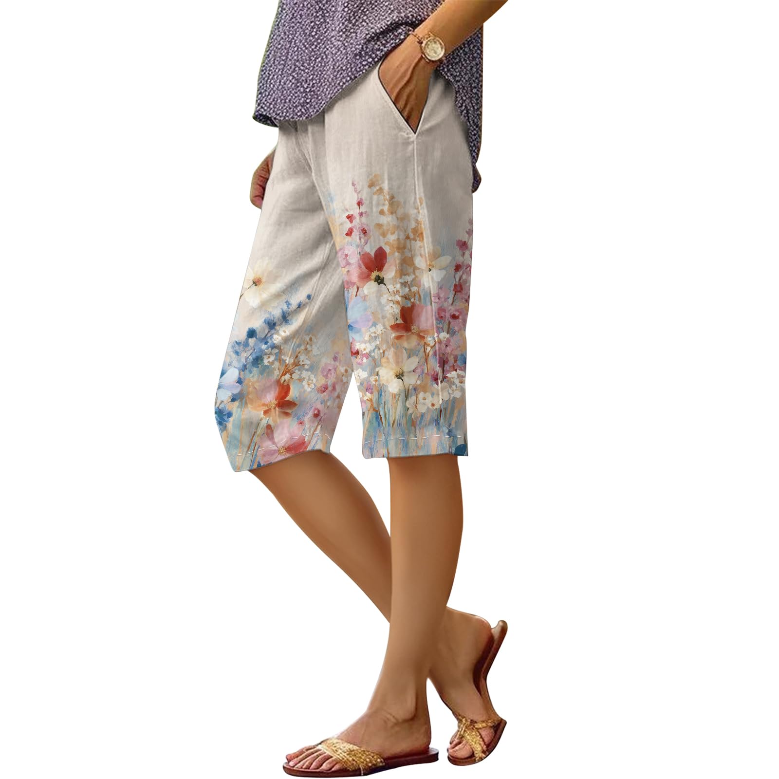 BIVENANT Womens Summer Casual Beach Bermuda Shorts Boho Striped Pant Loose Knee Length Wide Leg Athletic Pants with Pockets|Clothing