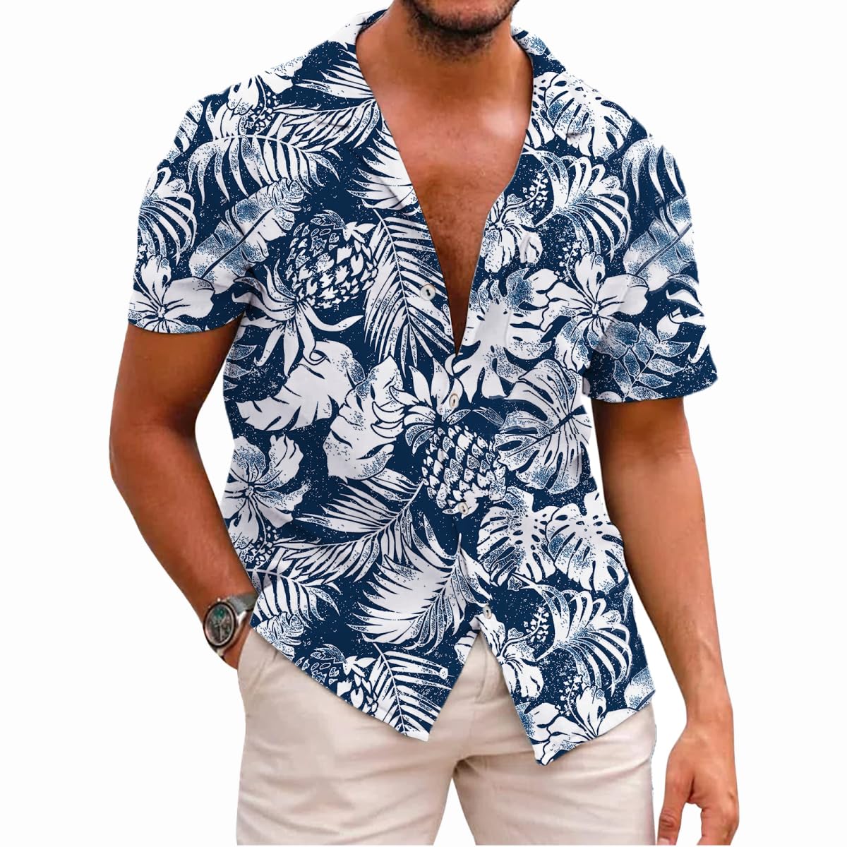 Corkifux Mens Hawaiian Shirts Short Sleeve Button Down Tropical Beach Summer V Neck Shirt|Clothing