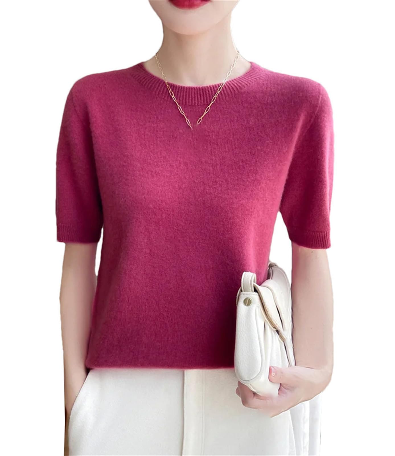 Women Cashmere Short Sleeve Sweater O-Neck Pullover Winter Cashmere Short Sleeve Shirt|Clothing
