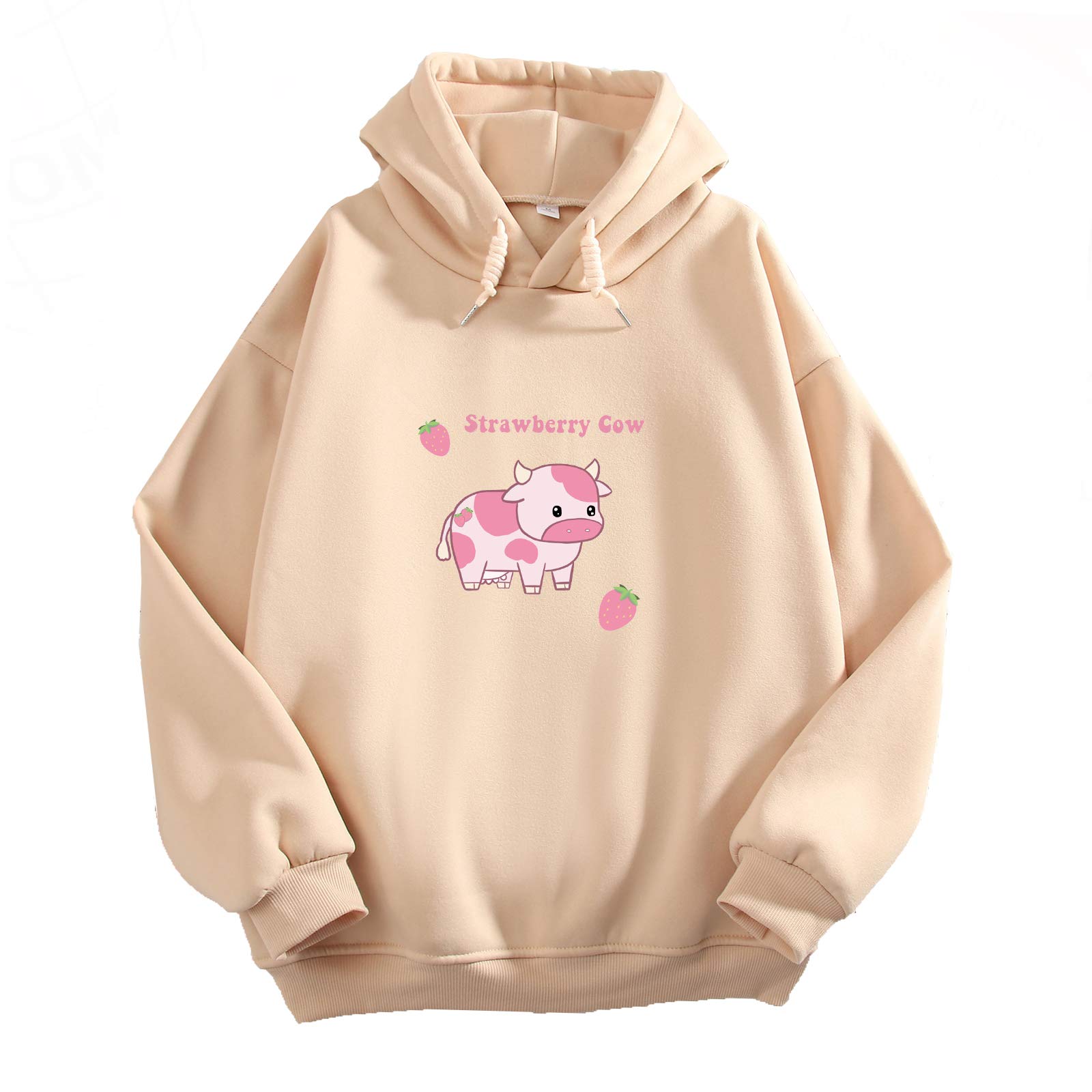 KEEVICI Pullover Sweatshirts for Women Cute Strawberry Cow Print Hoodie Casual Fuzzy Top|Clothing