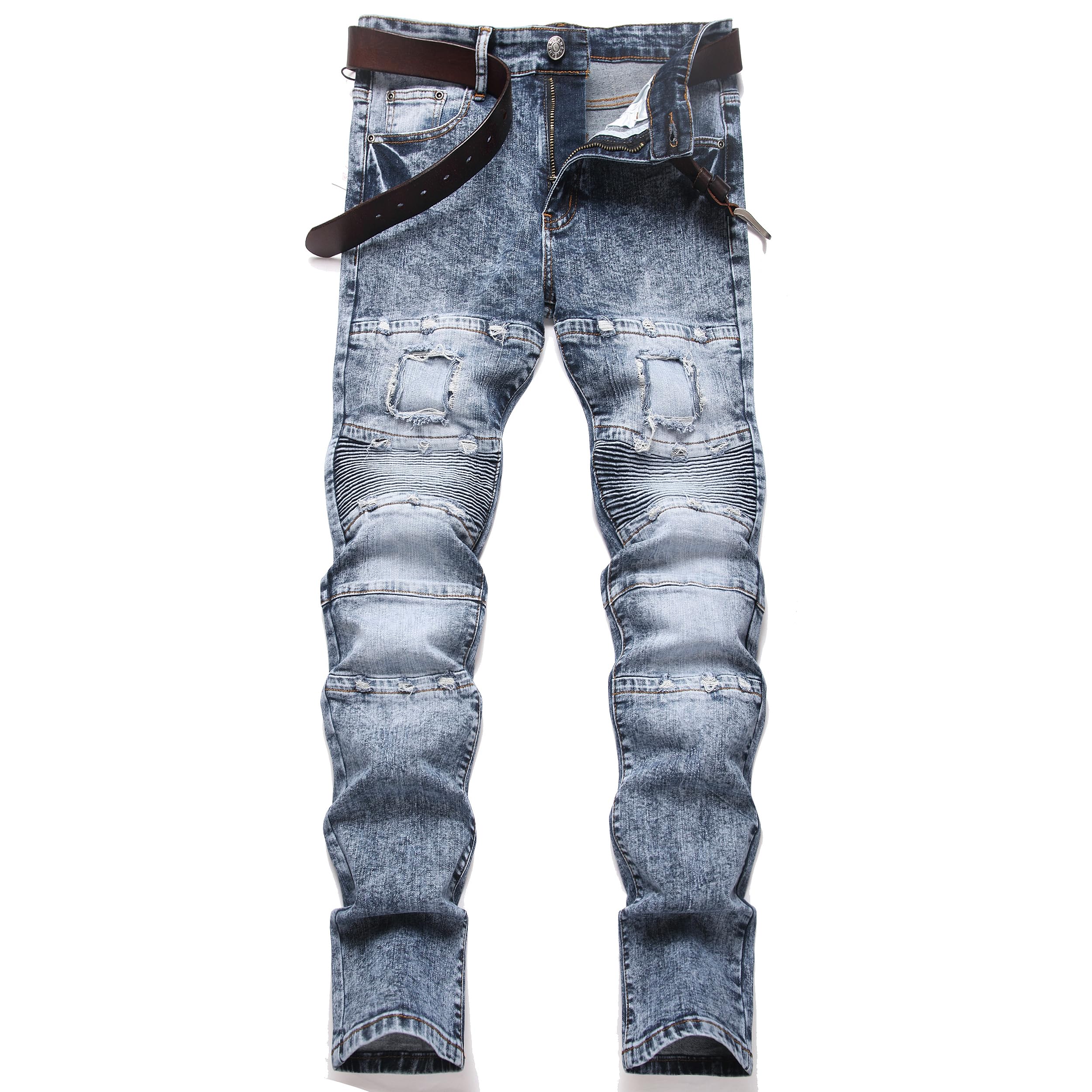 GHYYHG Men's Slim Fit Stretch Jeans Distressed Biker Straight Leg Pants|Clothing
