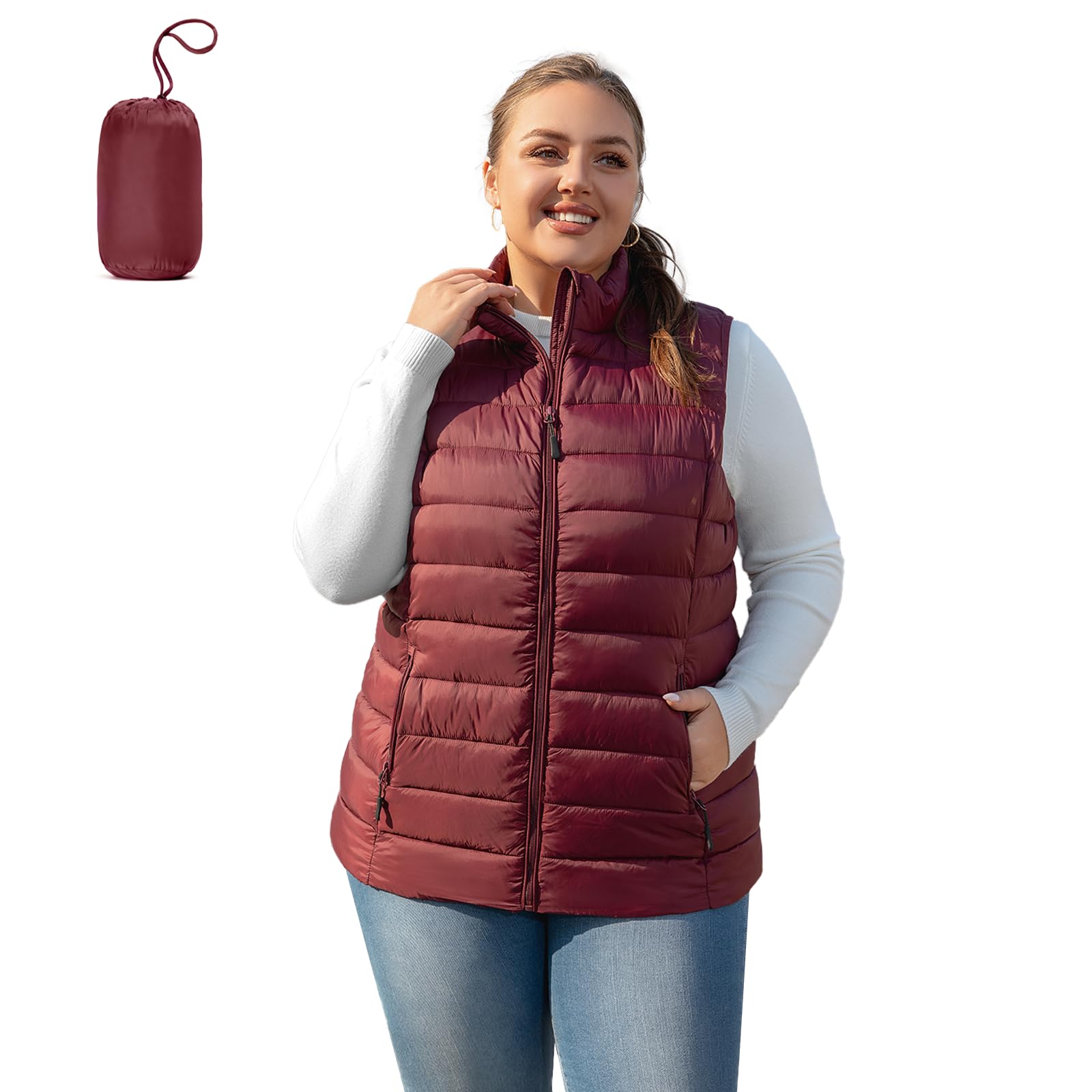 XALADU Plus Size Puffer Vest Women 1X-7X Water-Resistant Puffy Winter Vest Packable Lightweight Puffer Vest|Clothing