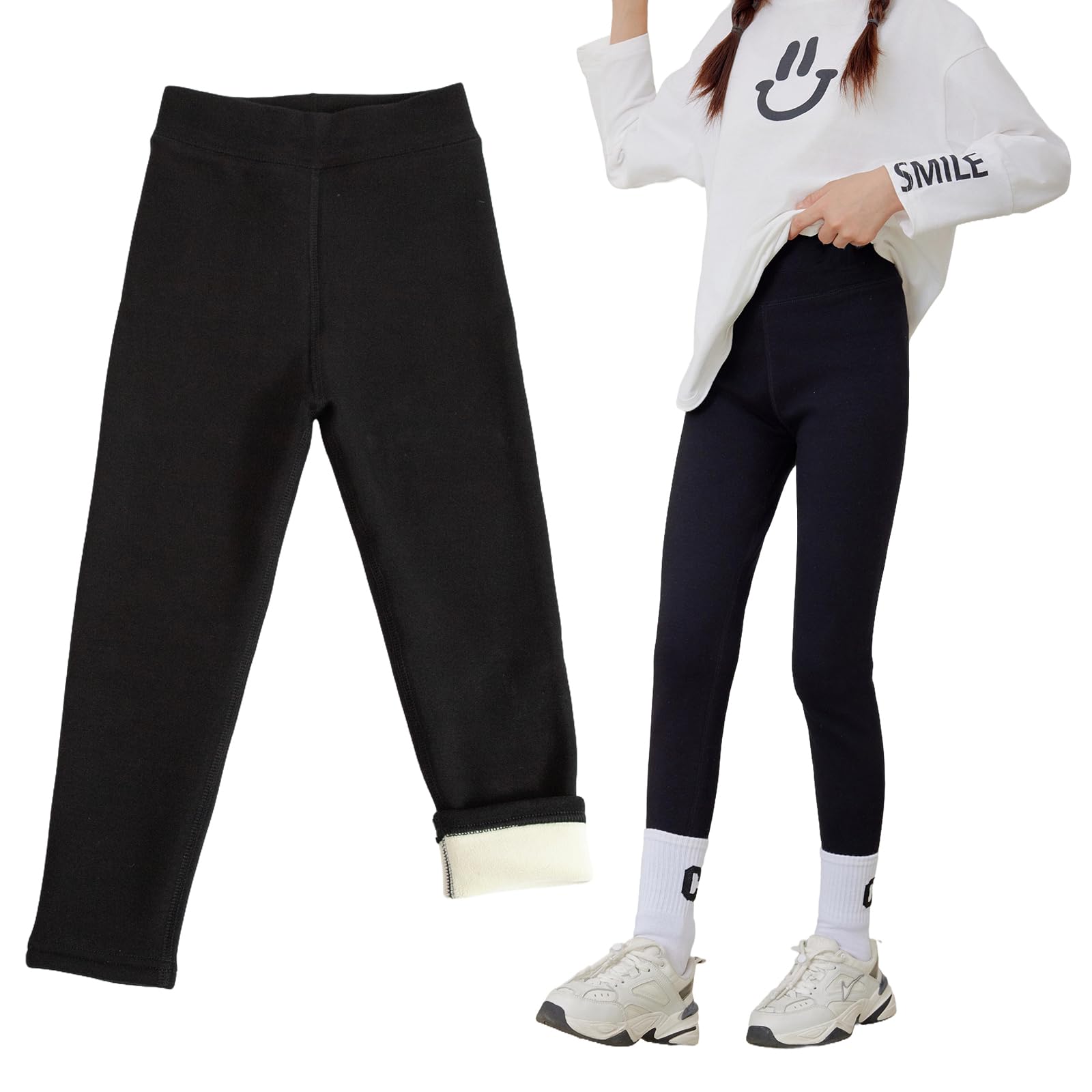 apoovane Toddler Girls Winter Warm Leggings Fleece Lined Cotton Thick Tights Kids Pants Designed for 40-65℉ Weather|Clothing