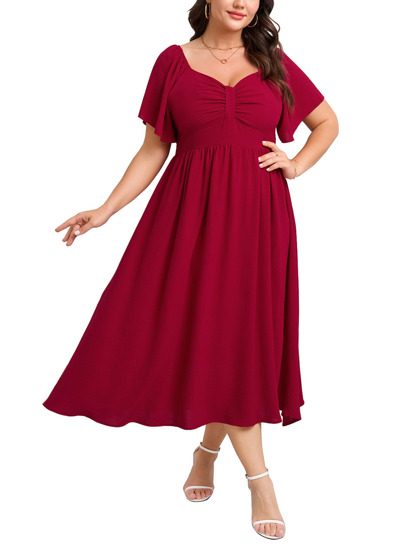 SCOMCHIC Women's Plus Size Maxi Dress Summer Short Sleeve Sweetheart Neckline A Line Wedding Guest Cocktail Dresses|Clothing