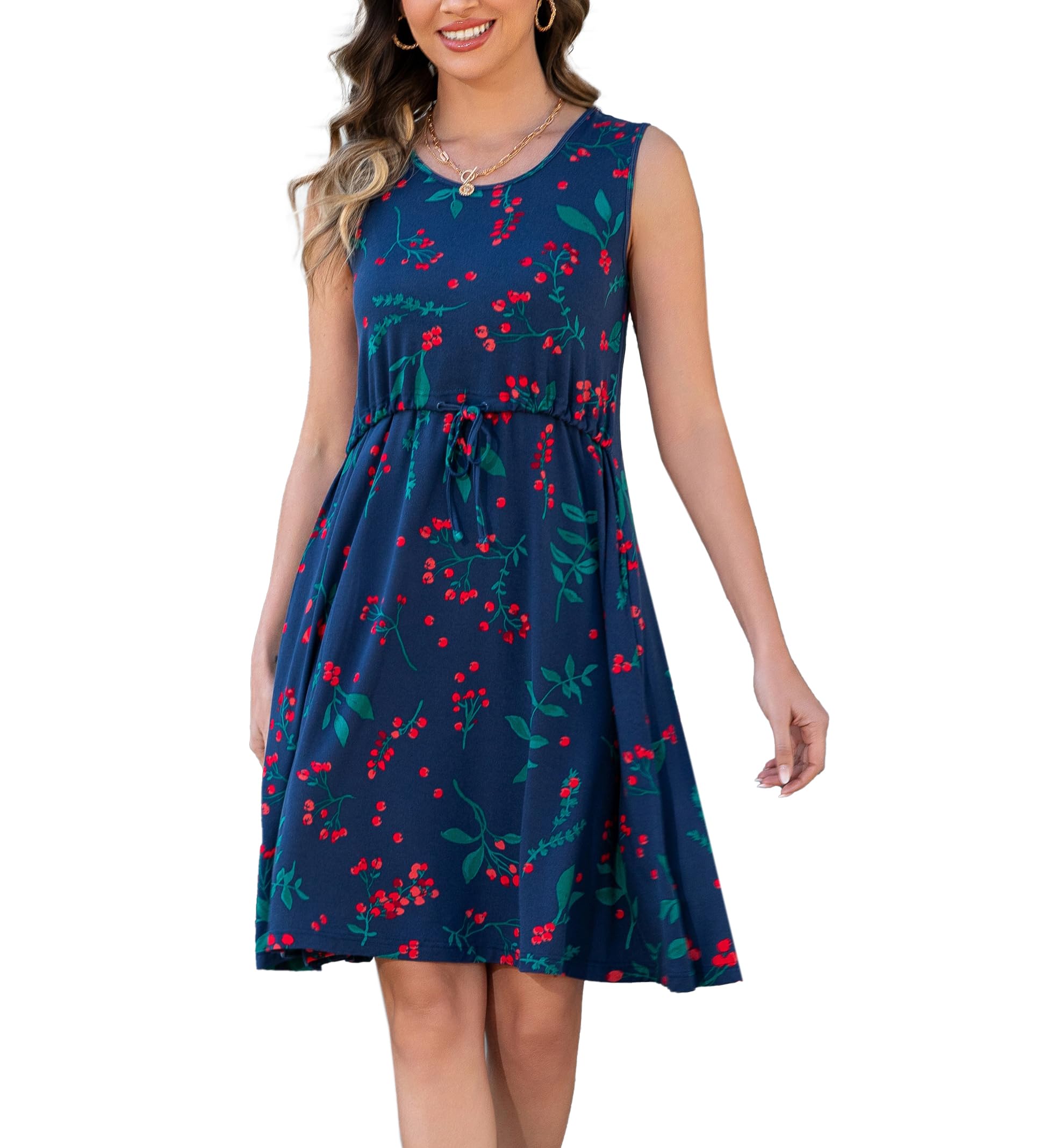 QINYI Womens Nursing Dress for Breastfeeding Sleeveless Drawstring Maternity Dress with Pockets|Clothing