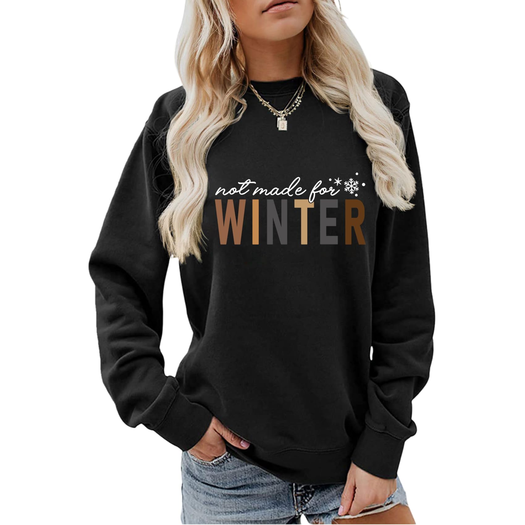 WESEOOU Women Not Made for Winter Sweatshirt Funny Winter Long Sleeve Shirt Letter Graphic Crew Neck Pullover Tops|Clothing