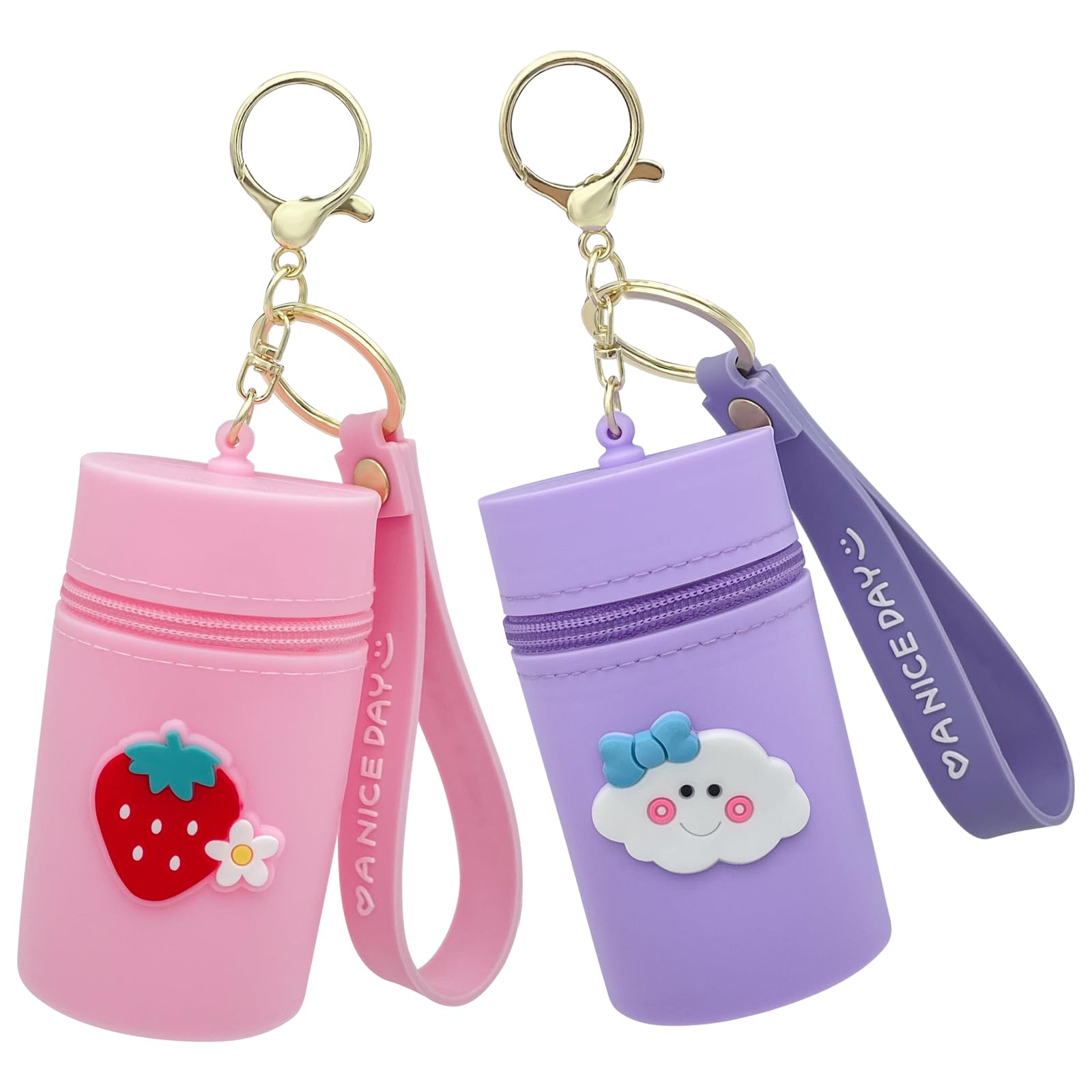 Ravlzors 2 Pack Silicone Lip Balm Holder Keychain with Metal Hooks and Clasp, Compact Lipstick Organizer, Portable Lip Gloss Pouch, Coin Storage,|Clothing