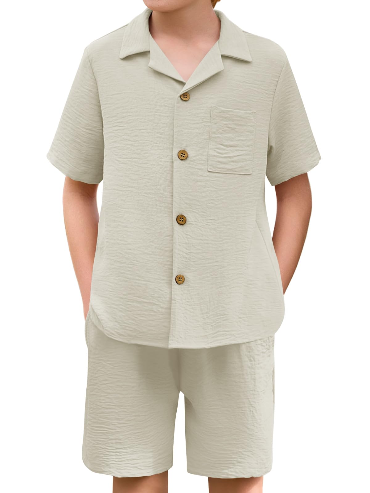 Haloumoning Boys 2 Pieces Summer Outfits Beach Short Sleeve Button Down Shirts and Shorts Vacation Texture Sets for Kids|Clothing