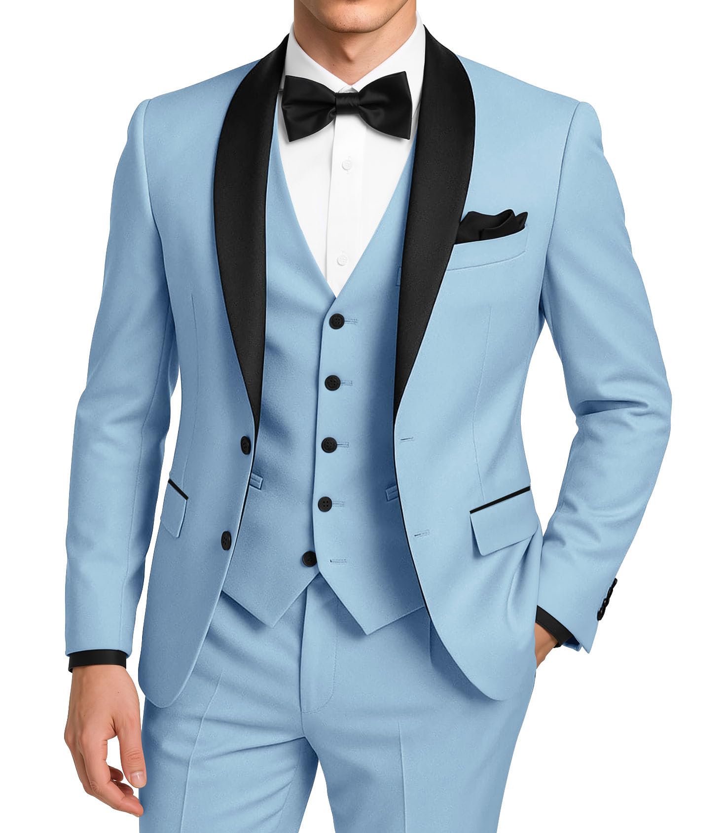 Wangyue Mens 3 Piece Tuxedo Suit Slim Fit Suits for Men Two Button Wedding Prom Tuxedo Shawl Lapel Blazer Vest Pants Set|Clothing