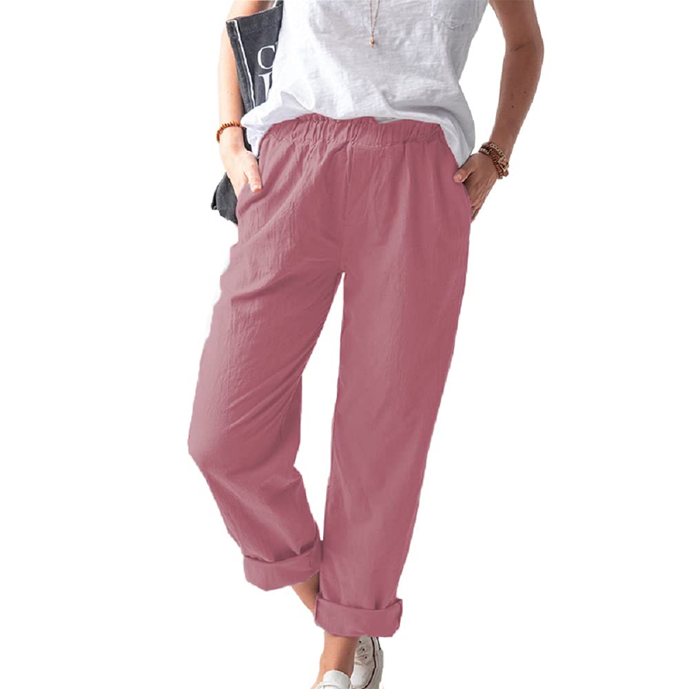 WROLEM Women's Straight Pants Elastic Waist Casual Trousers Pants with Pockets|Clothing