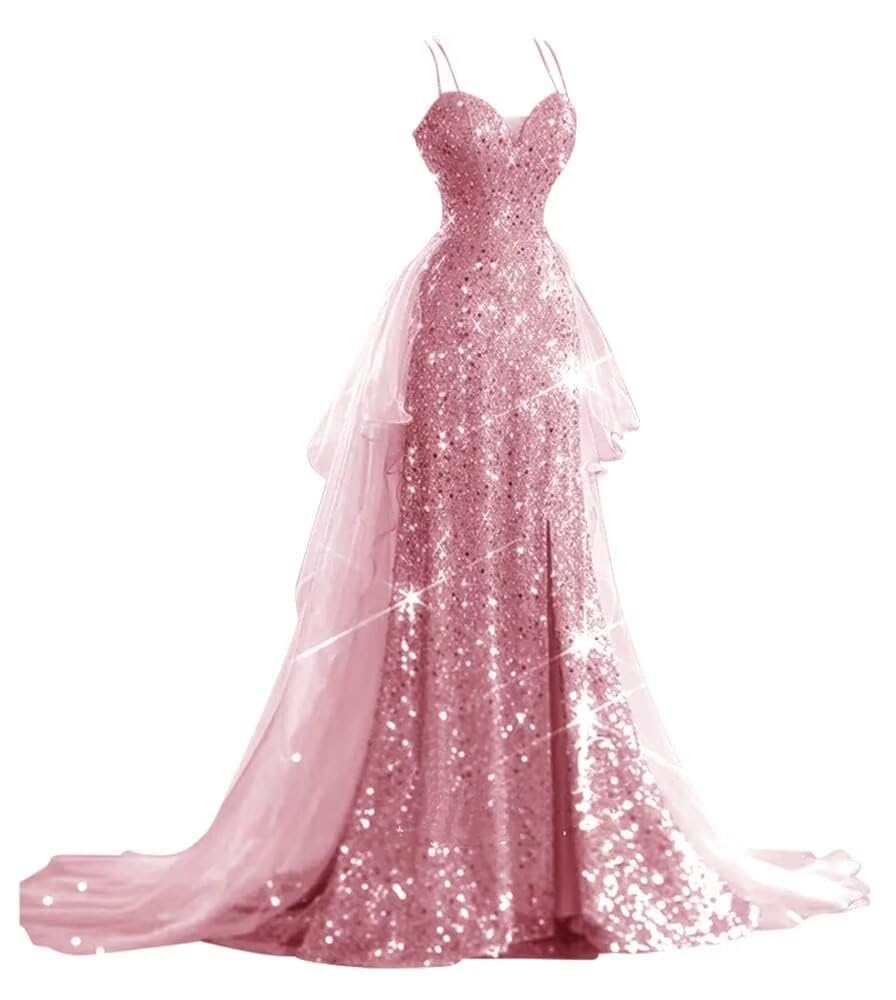 Sequin Mermaid Prom Dresses for Women 2026 2 Piece Spaghetti Straps Sparkly Tulle Wedding Dress Ball Gown with Slit|Clothing