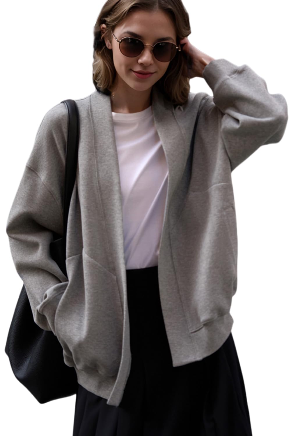 Fashion Oversized Womens athletic Sweatshirt blazer Pockets Sweaters no Zip Up jacket Lightweight Open Front Cardigan|Clothing