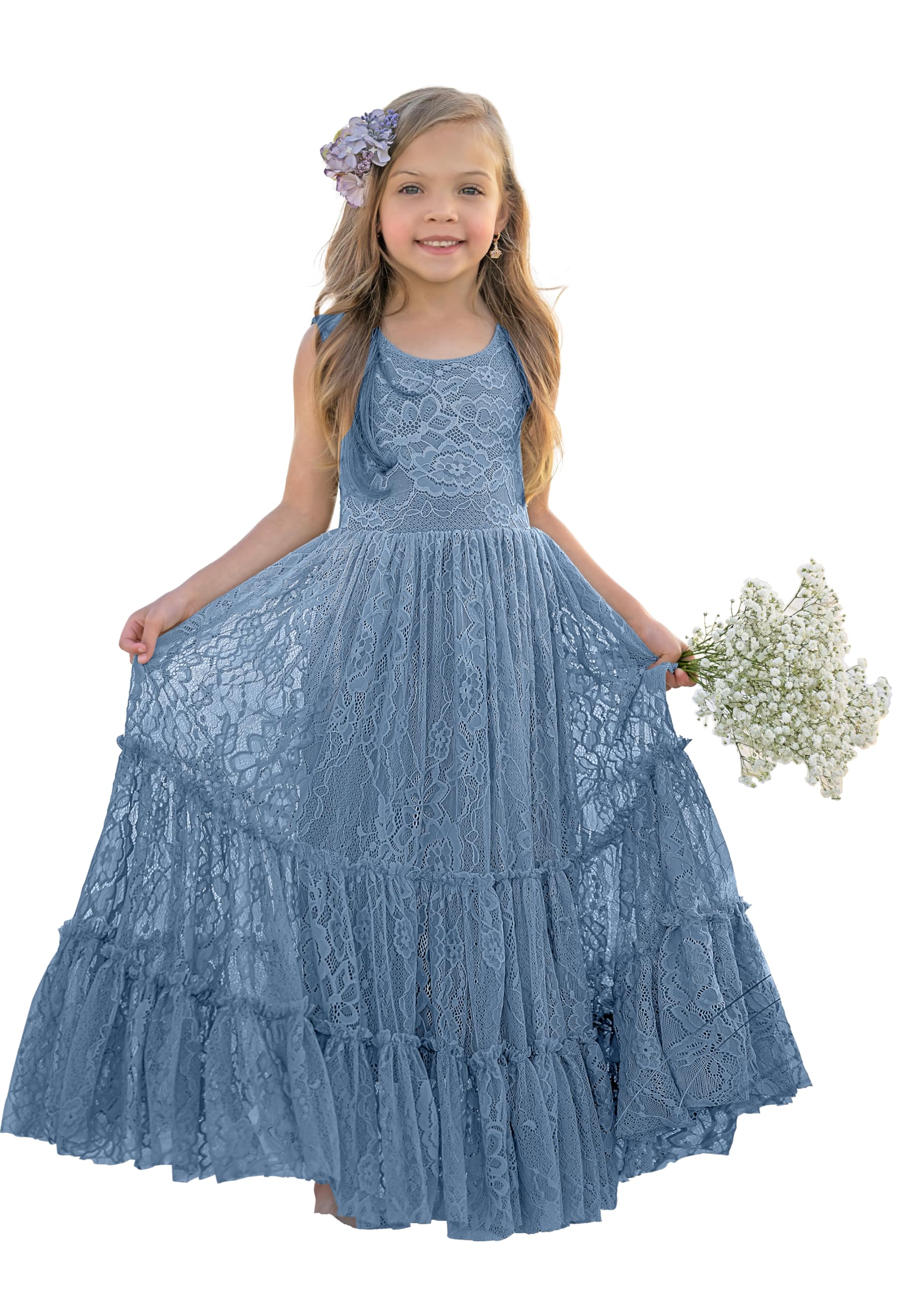 LalaMira Flower Girl Dress Lace Boho Toddler Dresses Ruffle Girl Dress for Wedding Garden Party Holiday Communion Sleeveless|Clothing