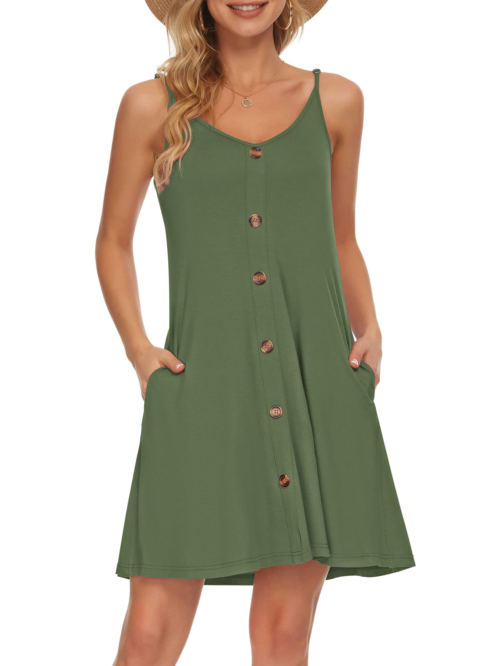 MISFAY Women Summer Spaghetti Strap Button V Neck Sleeveless Causal Beach Cover Up with Pocket|Clothing