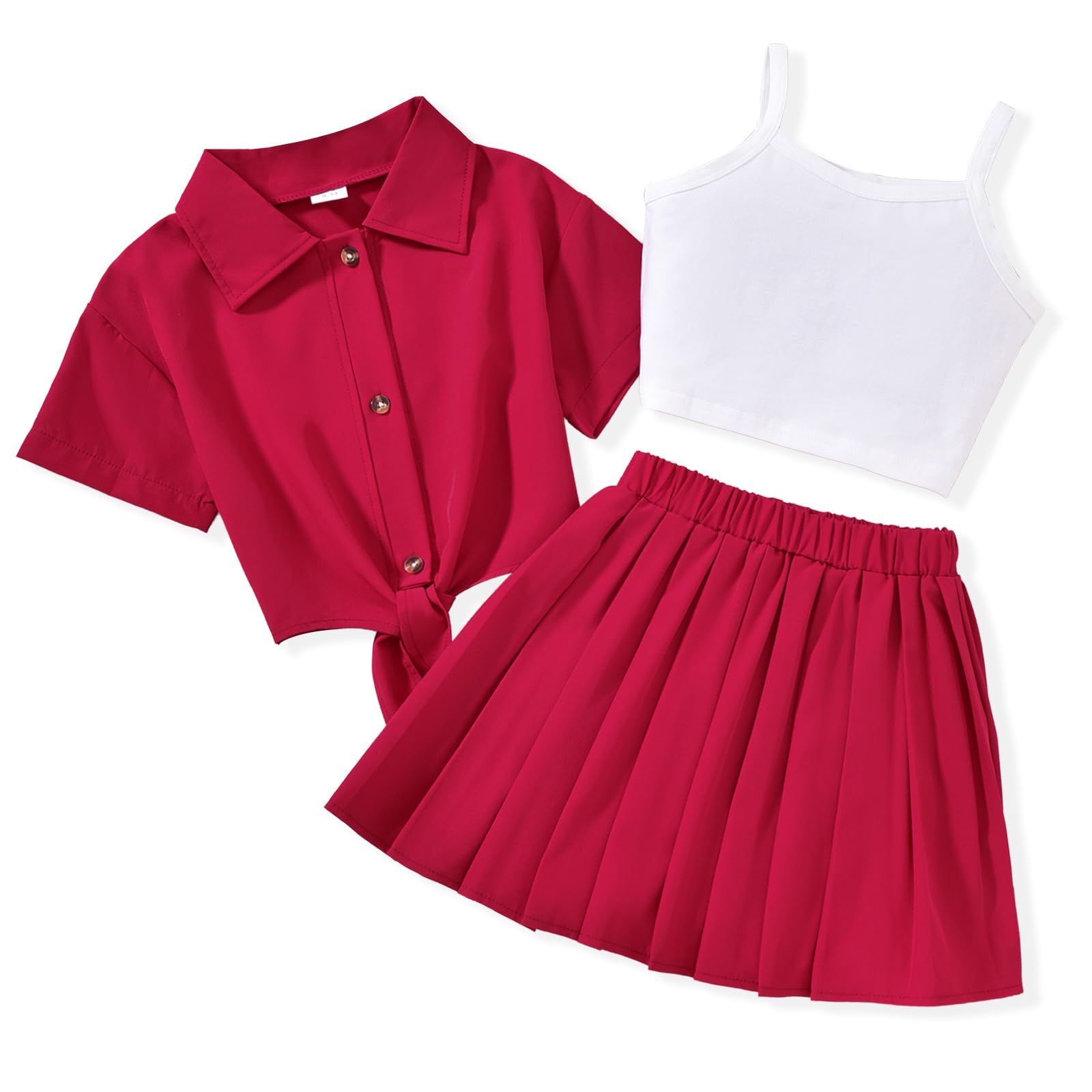 HIHA Girls 3 Piece Outfit Cami Crop Tops Skirt Set with Button Down Shirts Size 6-12|Clothing