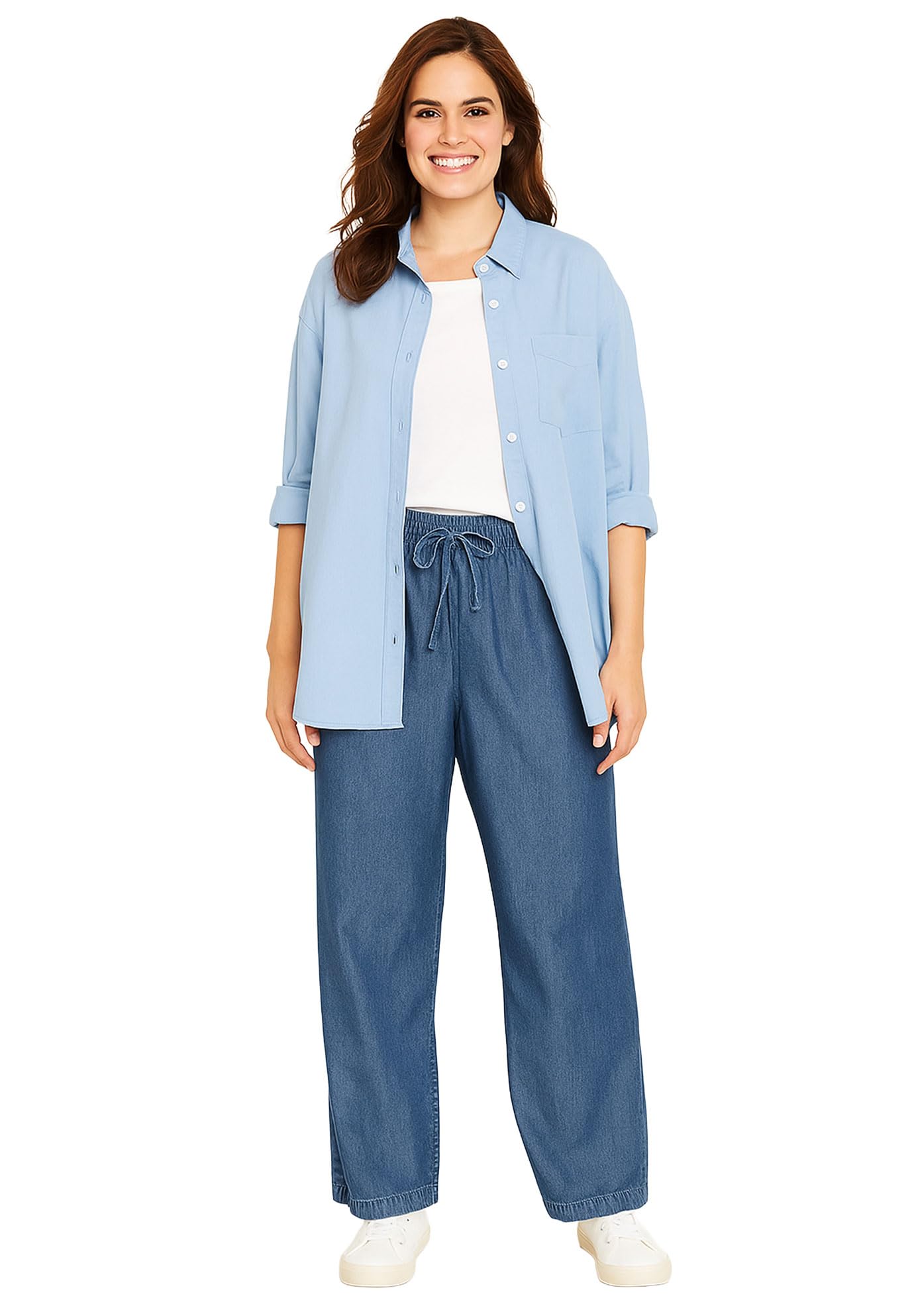 Woman Within Plus Size Wide-Leg Drawstring Denim Pants|Clothing