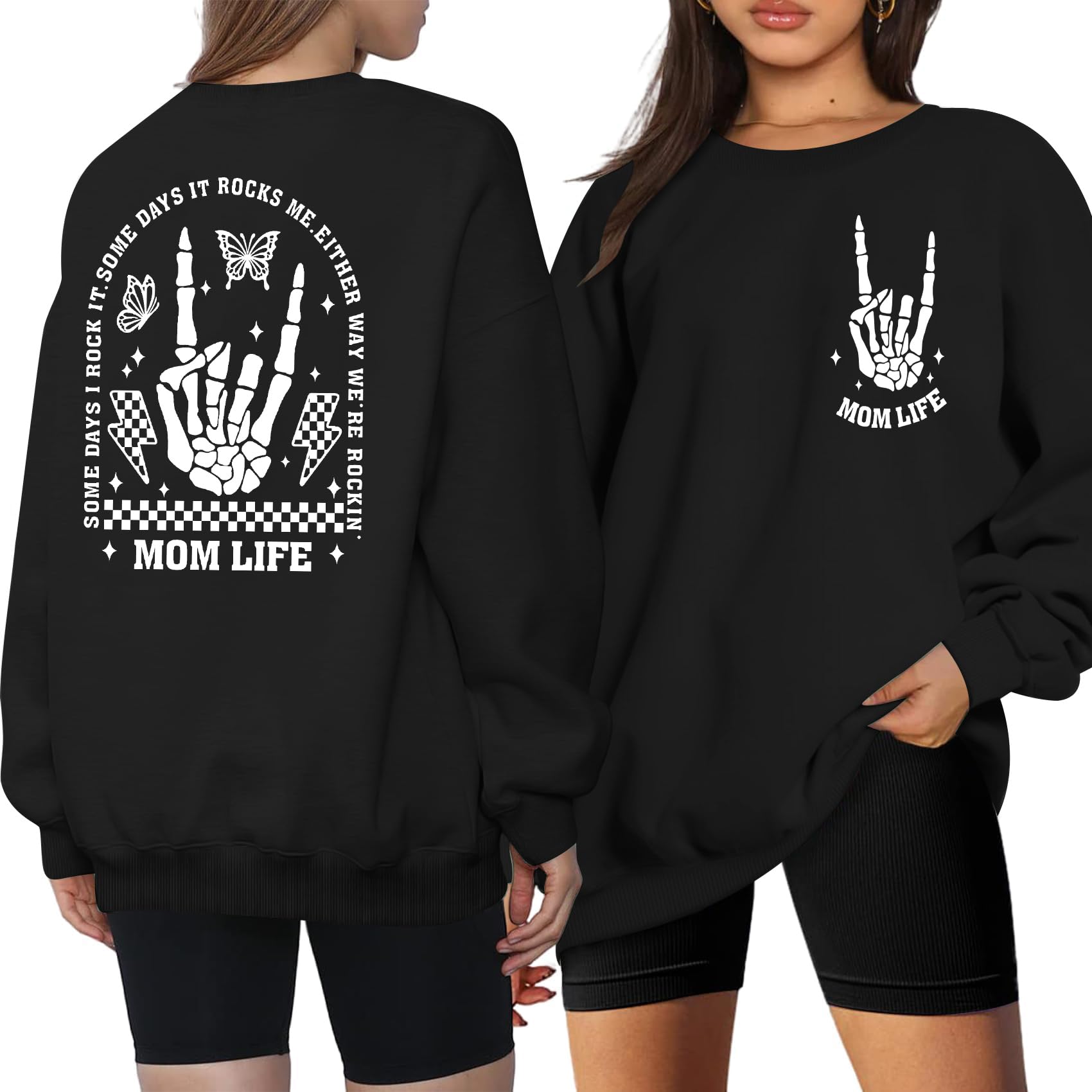 LAZYCHILD Mama Sweatshirts for Women: Oversized Mom Life Pullover Mama Shirt Motherhood Long Sleeve Skeleton Tops|Clothing