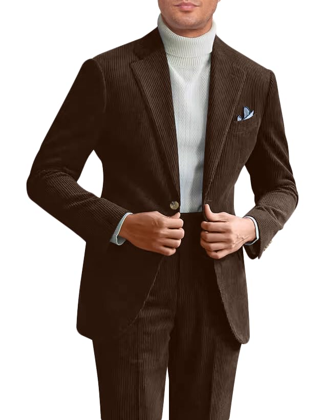 Fesenbo Men Corduroy Suit 2 Pieces Slim Fit Vintage Mens Coat 1 Button Tuxedo Blazer Pants for Wedding Business|Clothing