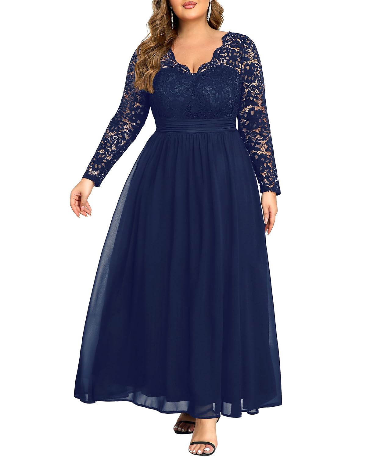 Talisea Plus Size Formal Wedding Dresses - Gowns Evening Prom Elegant V Neck Long Sleeve Lace Chiffon Long Maxi Dress|Clothing