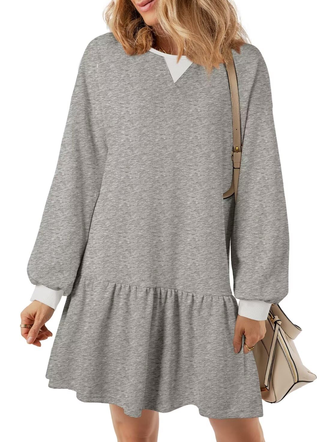 BLENCOT Womens 2025 Fall Long Sleeve Pullover Tops Crewneck Rib Knit Patchwork Sweatshirt Dress Casual Mini Dresses|Clothing