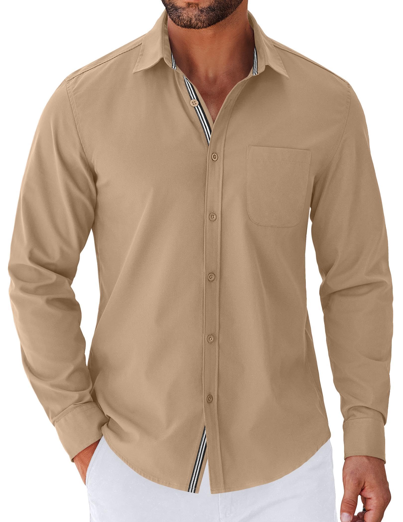 COOFANDY Men's Long Sleeve Casual Button Down Shirts Untucked Shirts for Men Regular Fit Dress Shirt|Clothing
