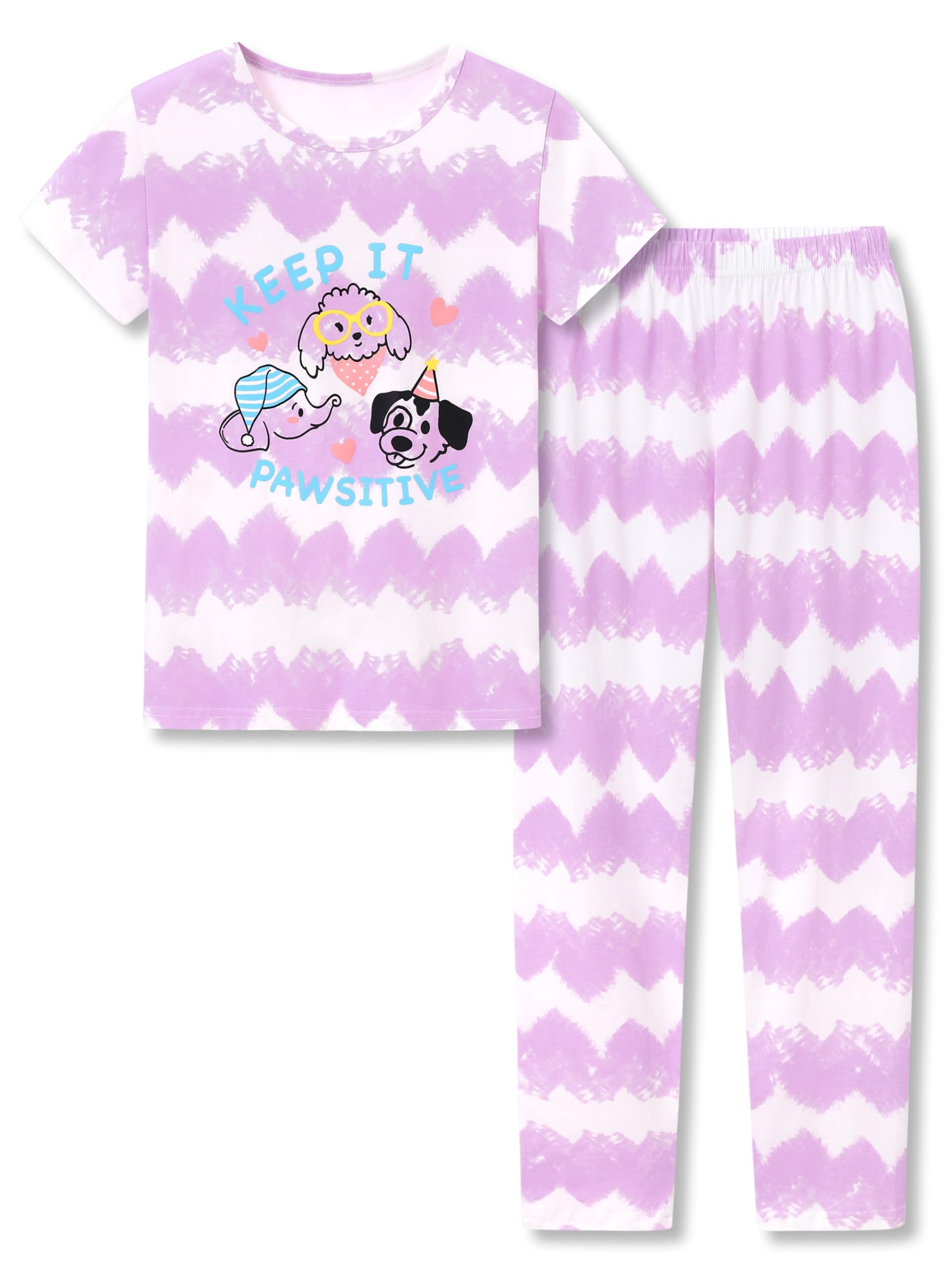 Tebbis Trendy Tie Dye Sleepover Summer Pajamas for Girls -100% Cotton Soft Butterfly Avocado Jammies Size 6-18|Clothing
