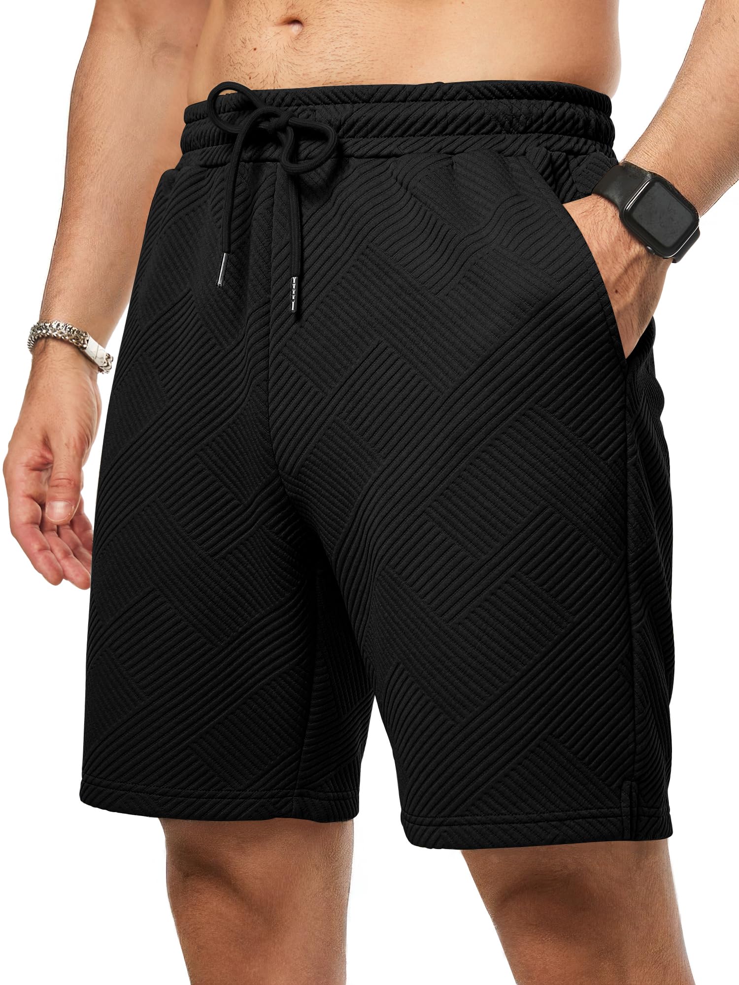 JMIERR Mens Casual 7" Shorts Summer Drawstring Elastic Waist Beach Sweat Shorts Texture with Pockets|Clothing