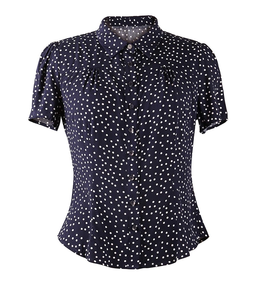 YARN & INK Women's Soft Comfy Tops, Button Down Classic Shirt 1950s Retro Elegant Blouse Tops|Clothing