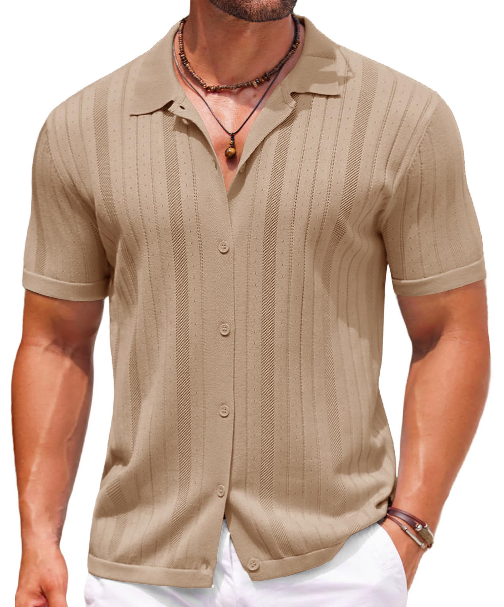 COOFANDY Mens Knit Button Down Shirts Crochet Polo Shirts Vintage Short Sleeve Textured Shirts Summer Beach Tops|Clothing