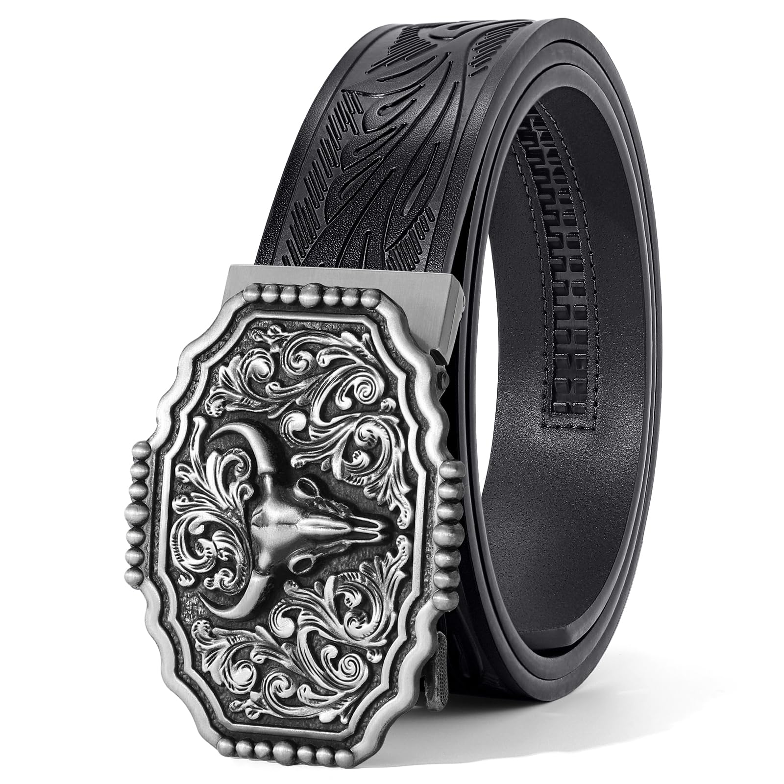 SANSTHS Ratchet Cowboy Belt, Western Ratchet Belts for Men Ratchet Western Belt with Automatic Cowboy Buckle|Clothing