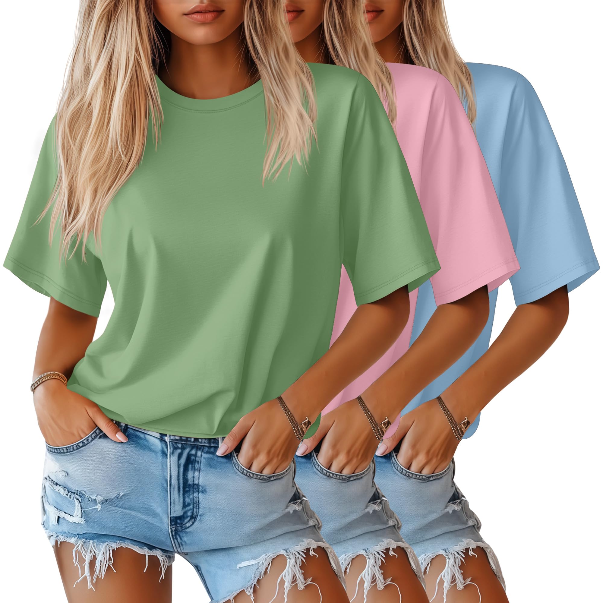 Huukeay 3 Pack Women's Half Sleeve T-Shirts, Crew Neck Elbow Length Tops Loose Casual Basic Tees Summer Tunic Tops|Clothing