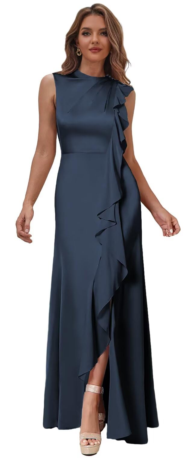 Mermaid Mother of The Groom Dresses for Wedding Navy Blue Formal Gown with Slit Size 10|Clothing