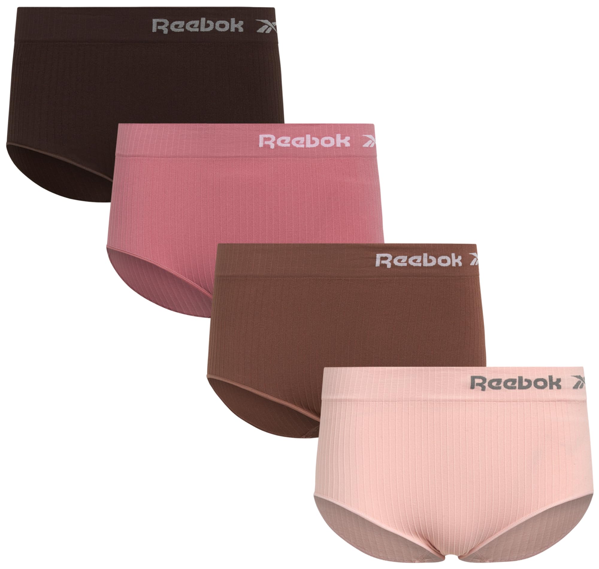 Reebok Womens Briefs Underwear - 4 Pack Soft Stretch Ribbed Knit High Waisted Brief Panties - Seamless Underwear for Women|Clothing