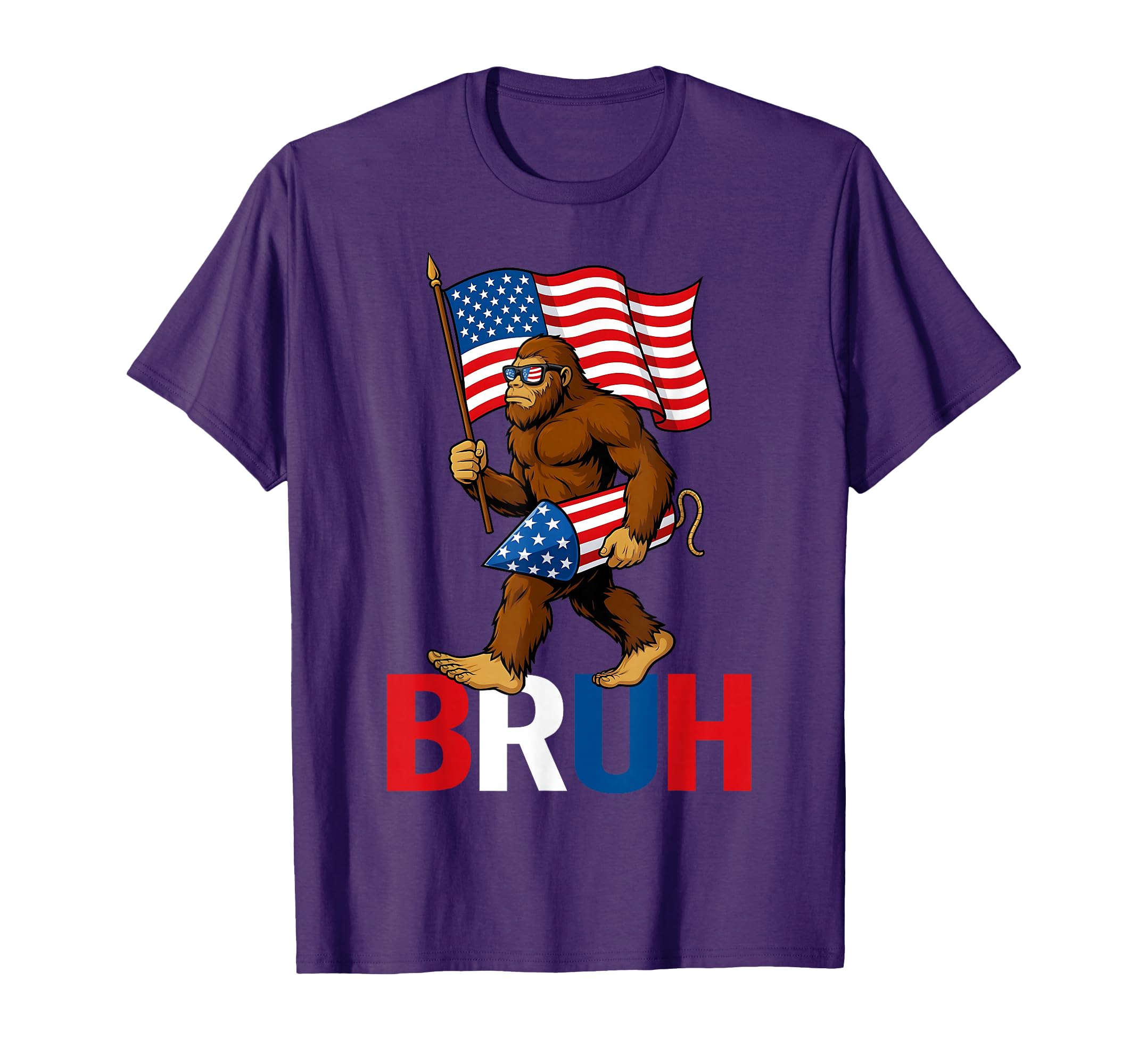 Bruh Bigfoot Fireworks American Flag Patriotic 4th Of July T-Shirt|Clothing
